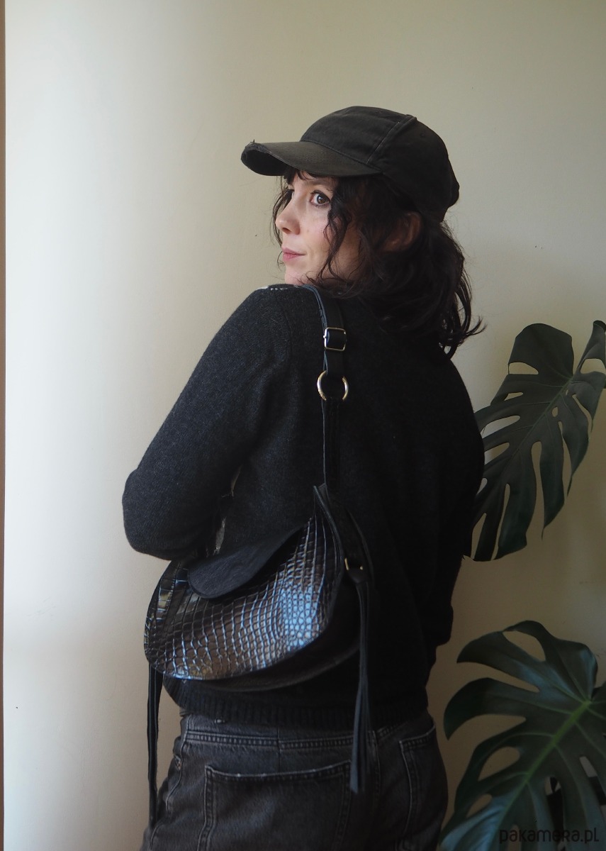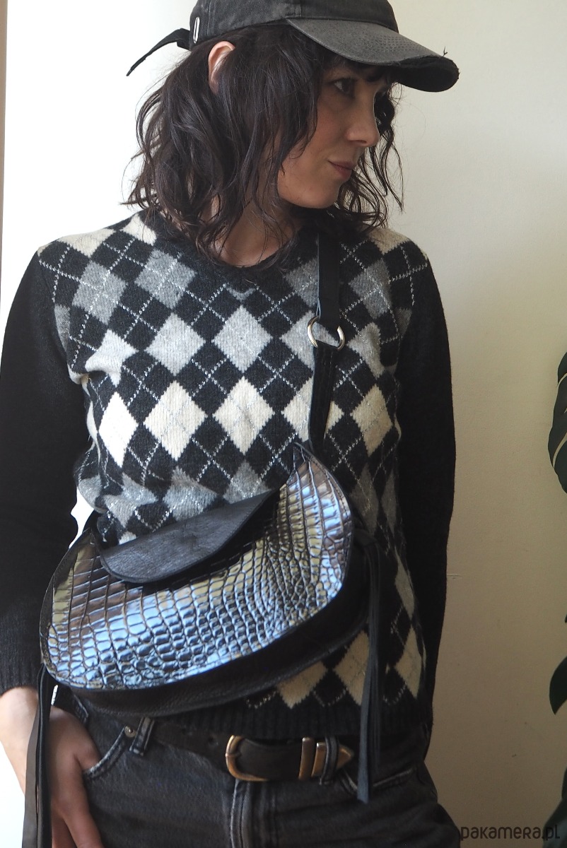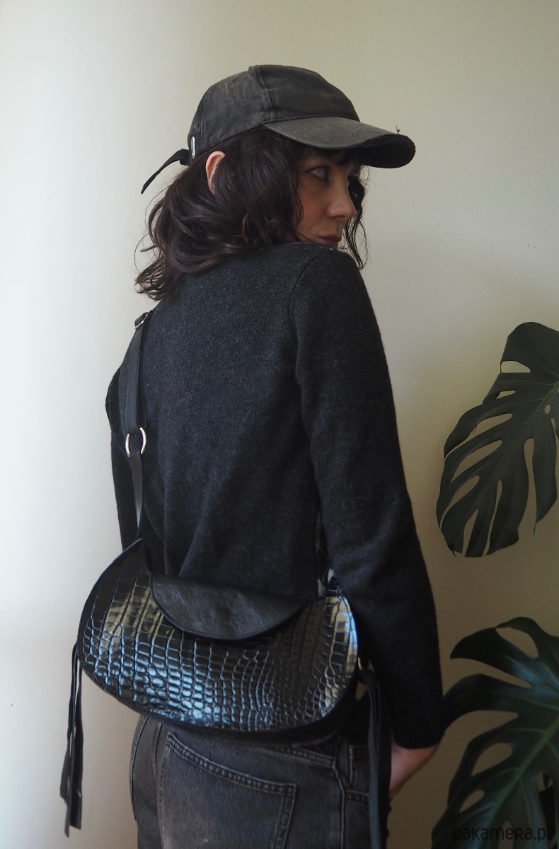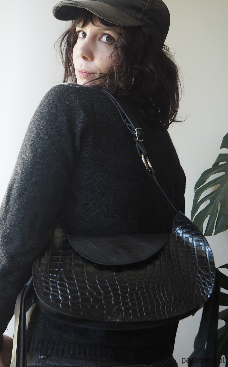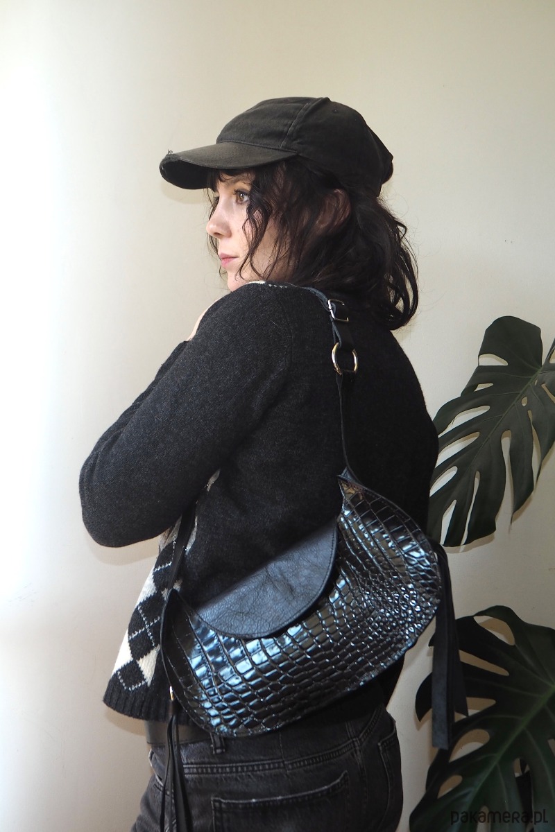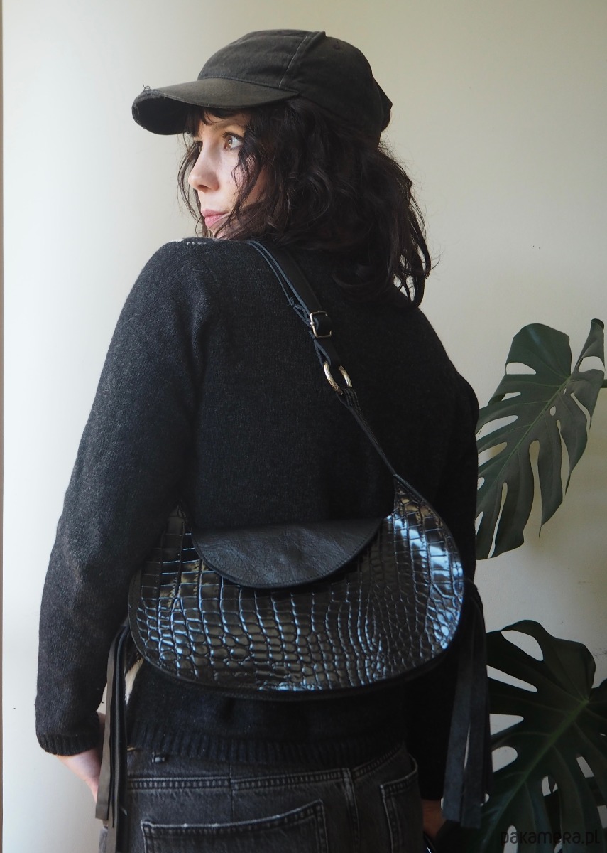 Skórzana czarna torebka rogalik z recyklingu krokodyl