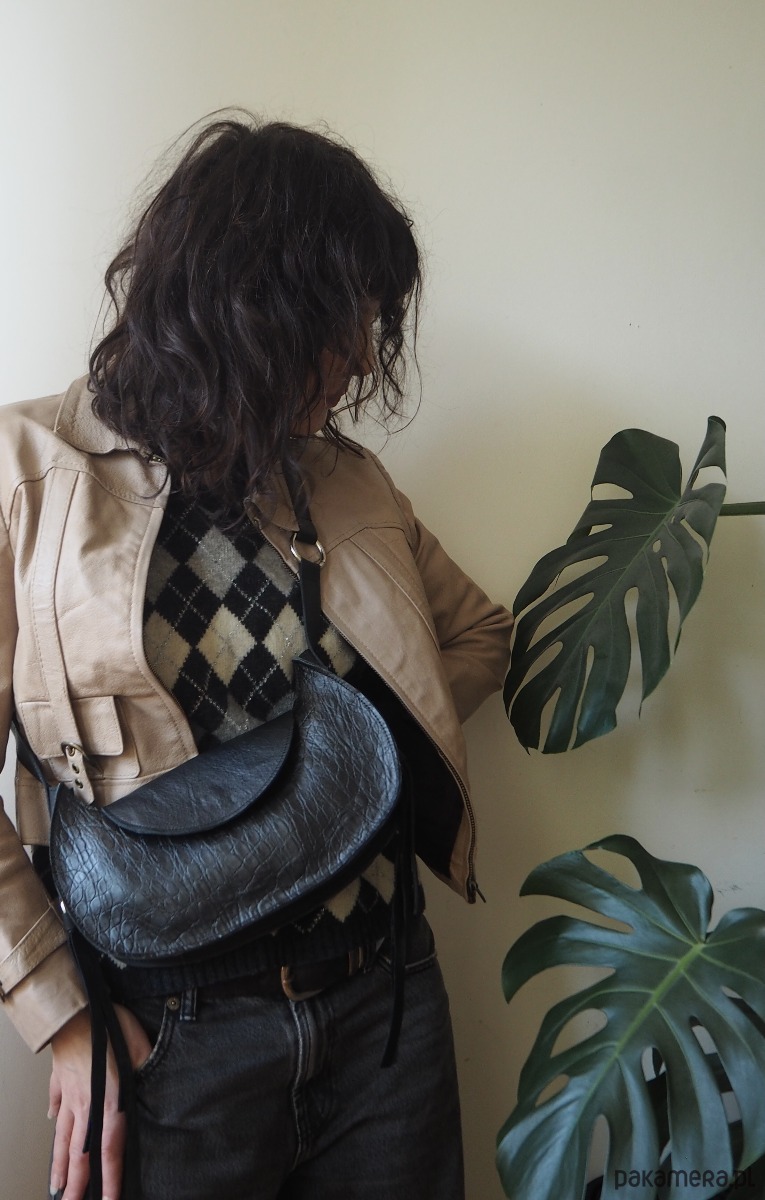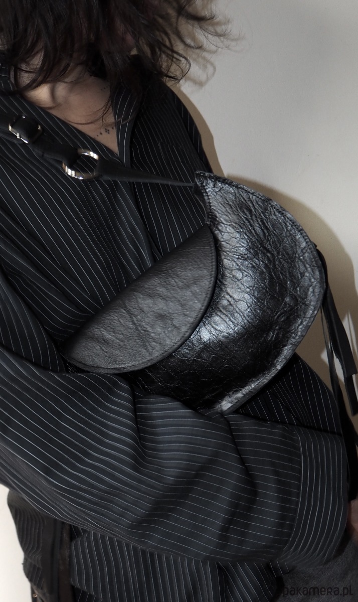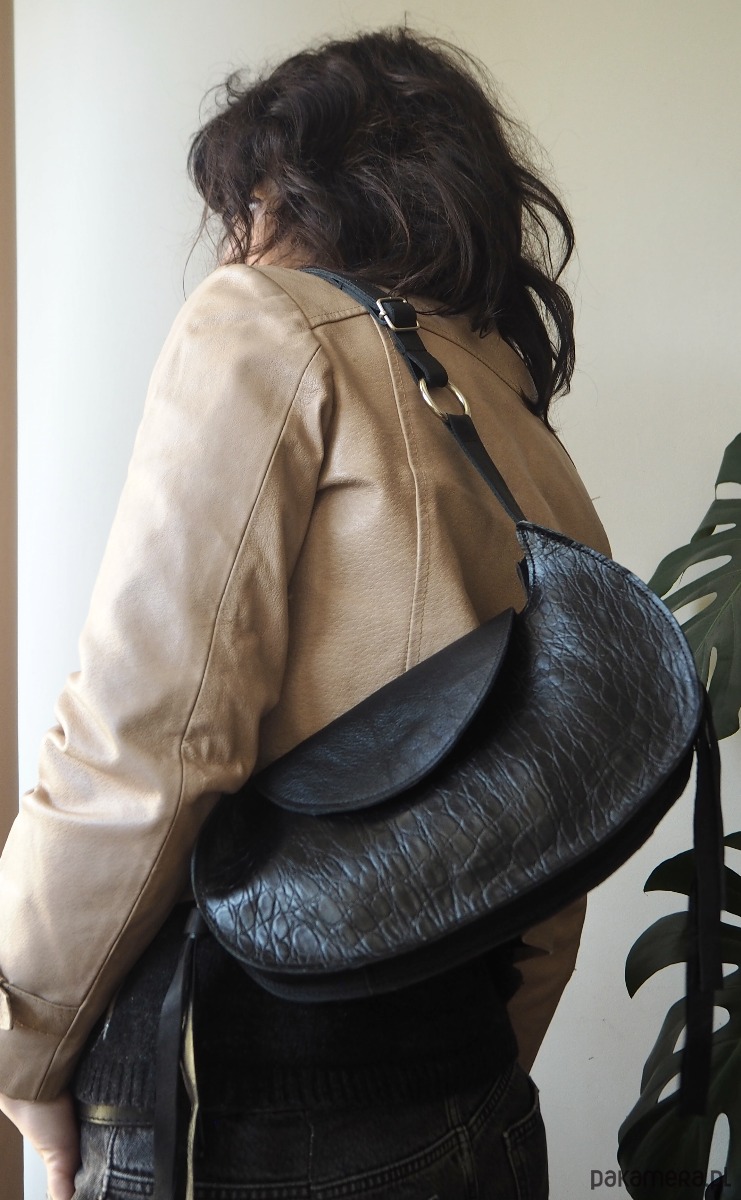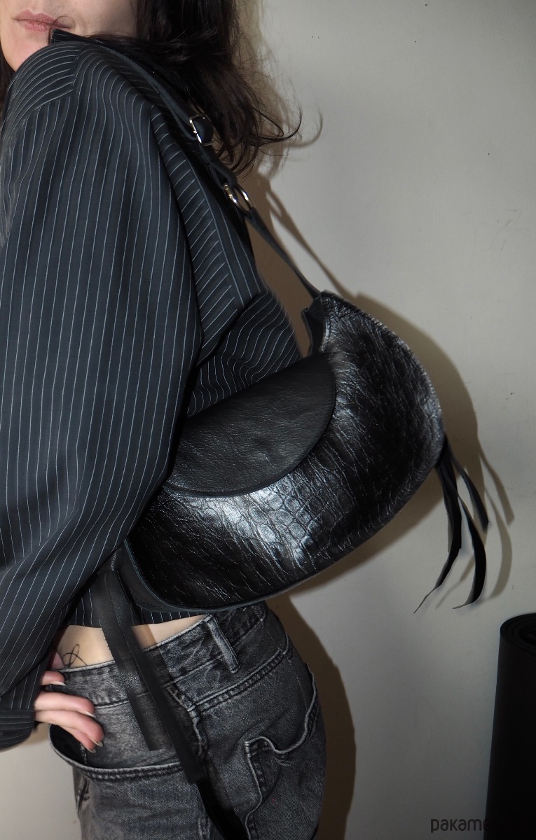 Skórzana czarna torebka rogalik z recyklingu krokodyl