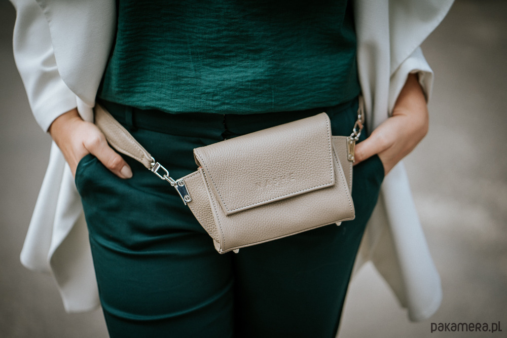 Switch Bag to model, który dzięki dołączonym w komplecie dwóm paskom różnej długości może służyć jako tradycyjna torebka, lub jako nerka noszona w pasie.