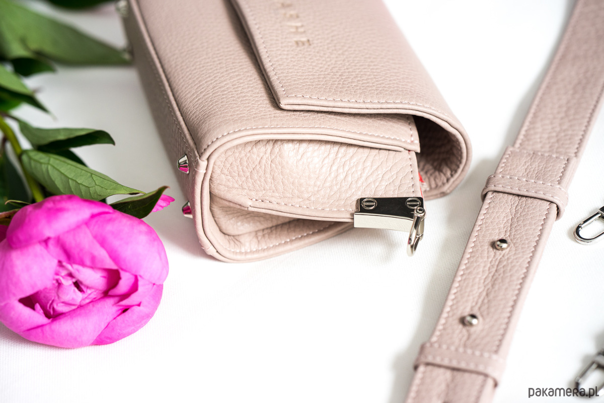 Torebka Nerka została uszyta ze skóry naturalnej o groszkowej fakturze.