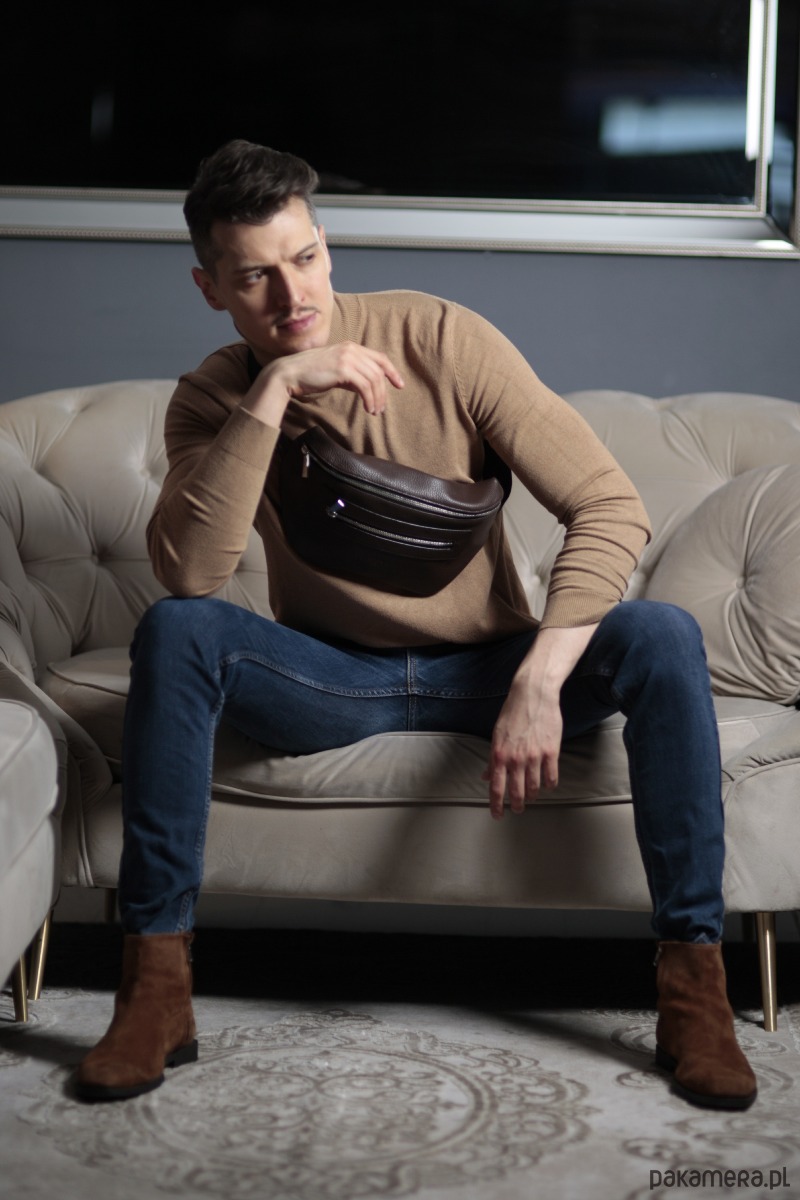 Szyk, styl i funkcjonalność z pojemną saszetką nerką na suwak z regulowanym, mocnym paskiem w kolorze czarnym. To nie tylko praktyczny dodatek, ale także elegancki element Twojej garderoby.