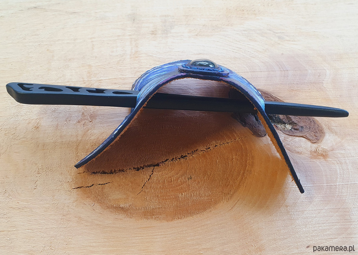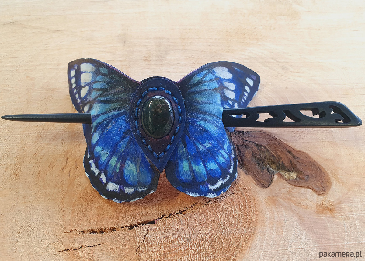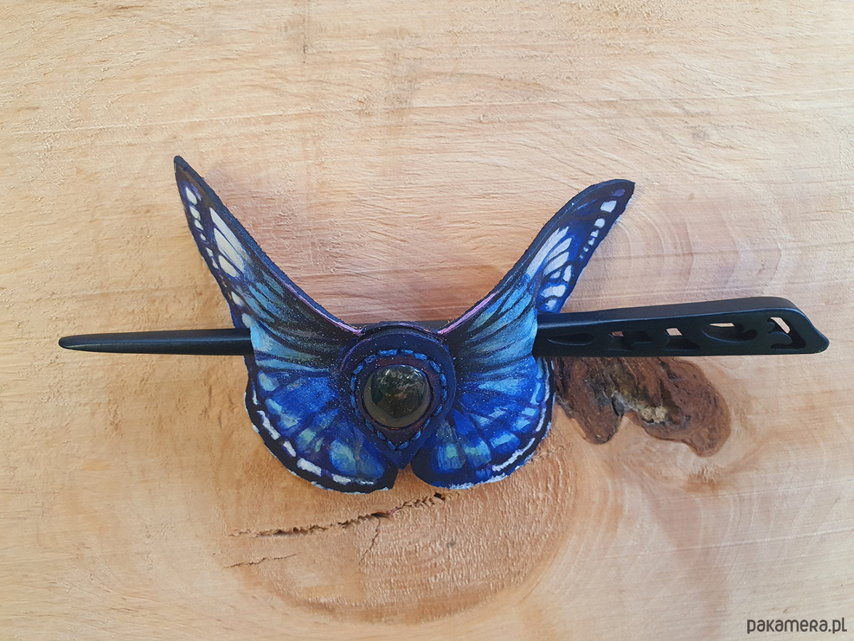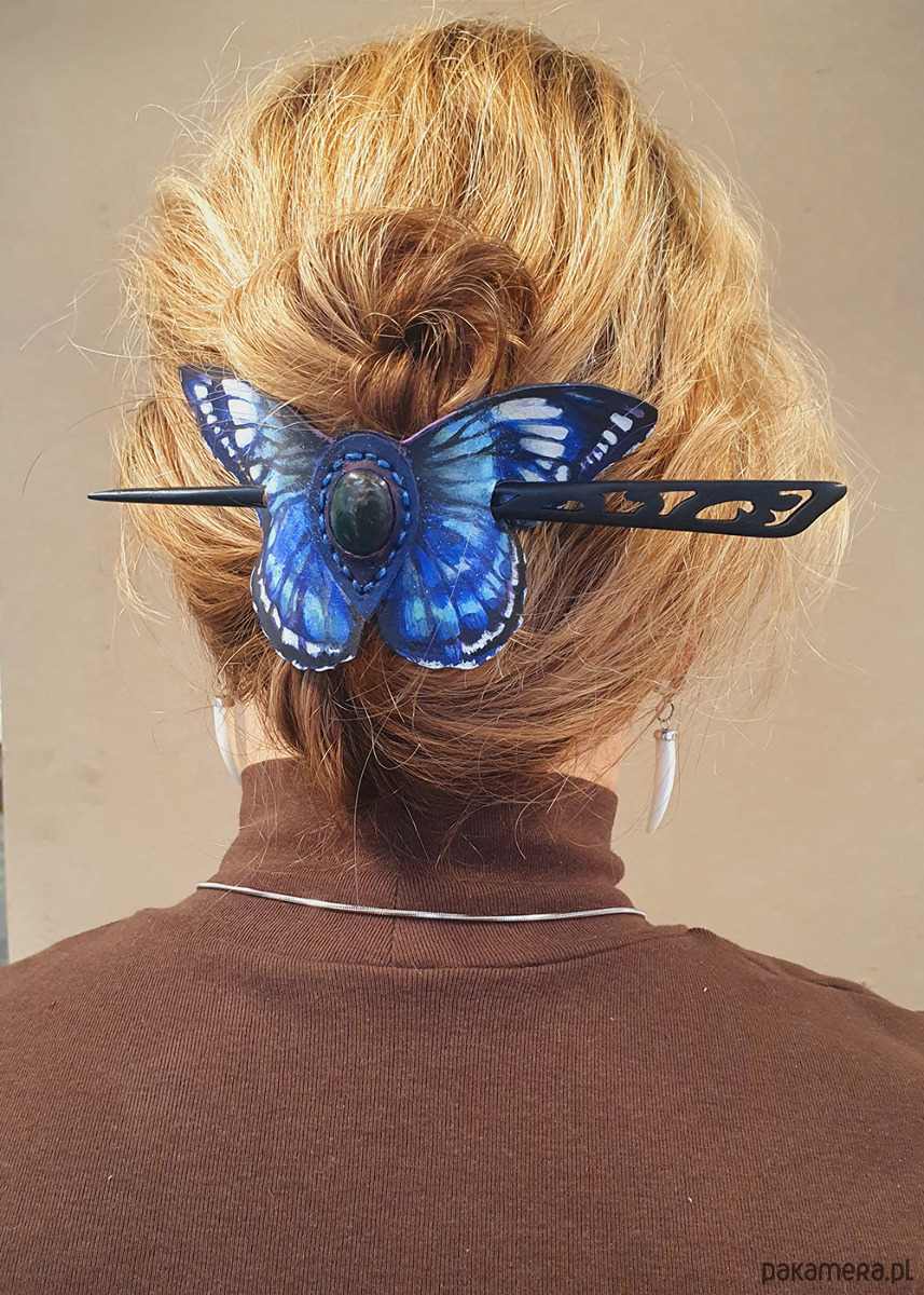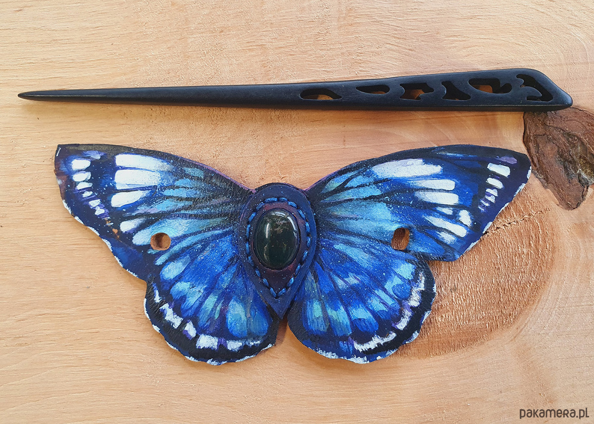 Nietypowa, Ręcznie wykonana ze skóry naturalnej spinka do włosów.