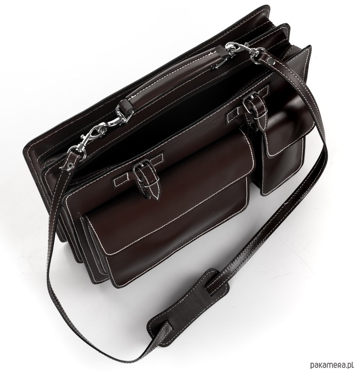 Skórzana Teczka - Aktówka - paski do przypięcia parasola (7075)