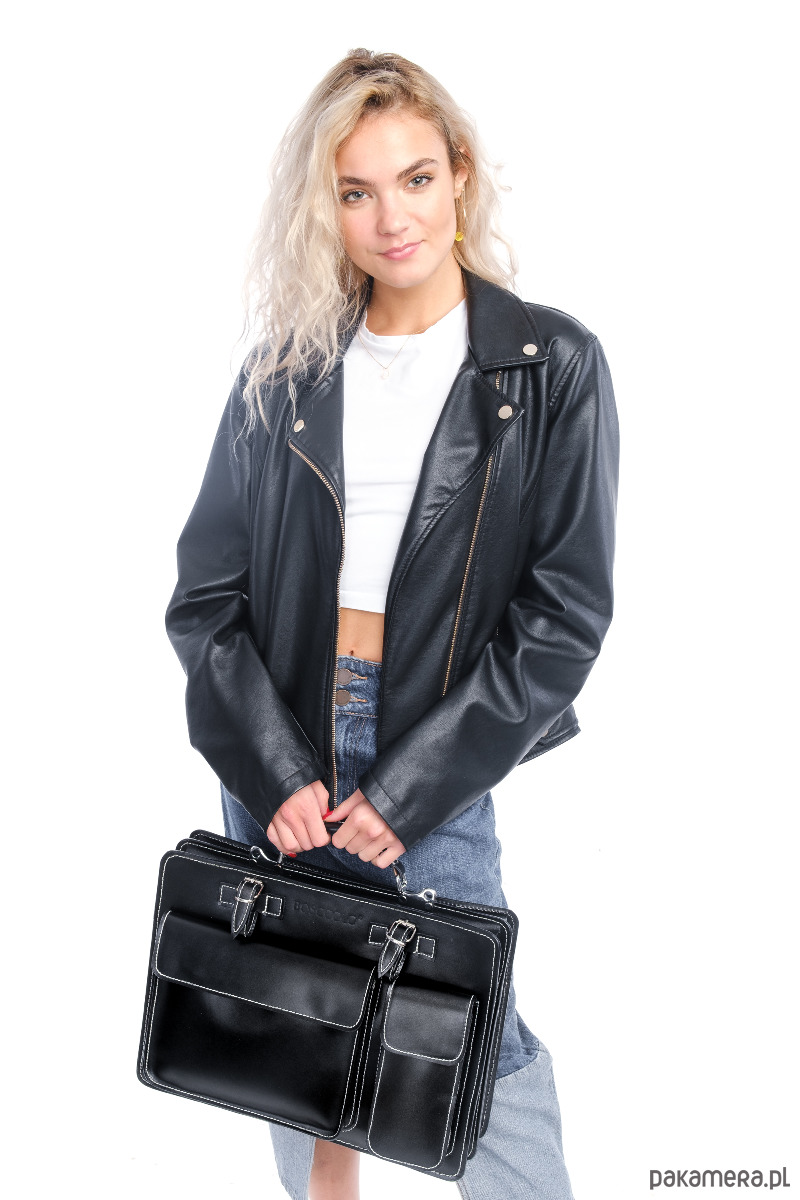Aktówka jest bardzo lekka, usztywniana. Orygninalne przeszycia.