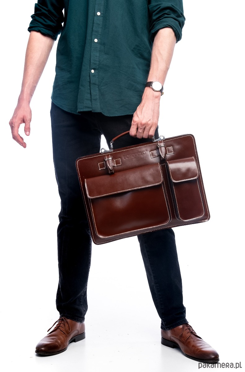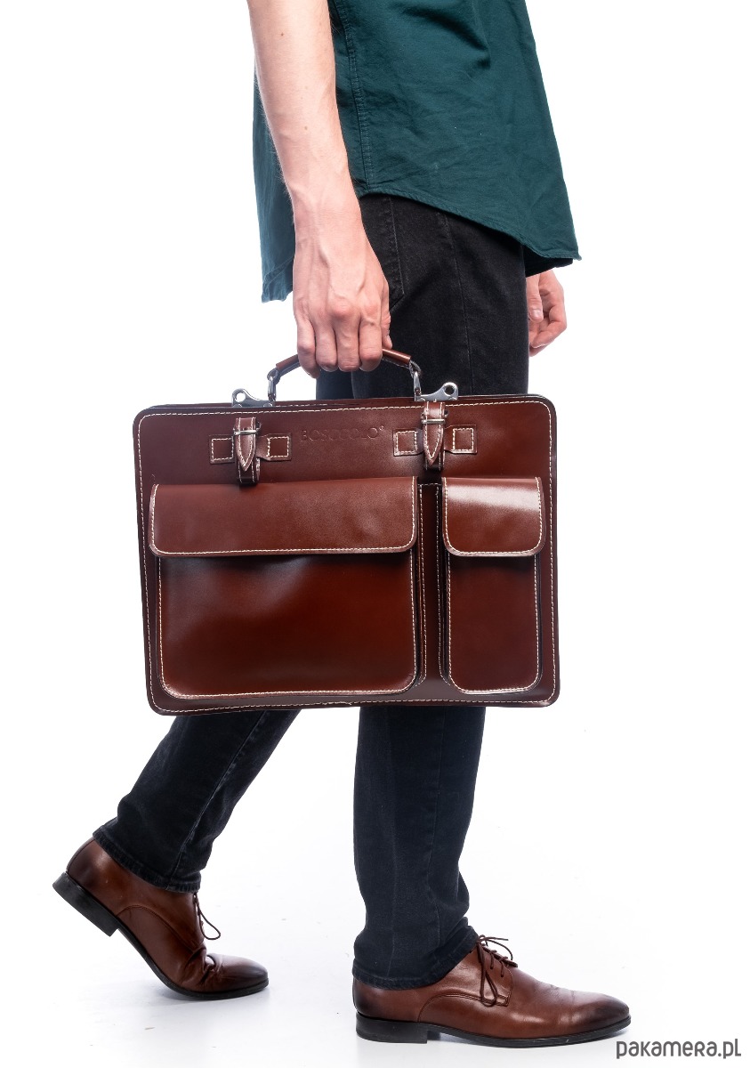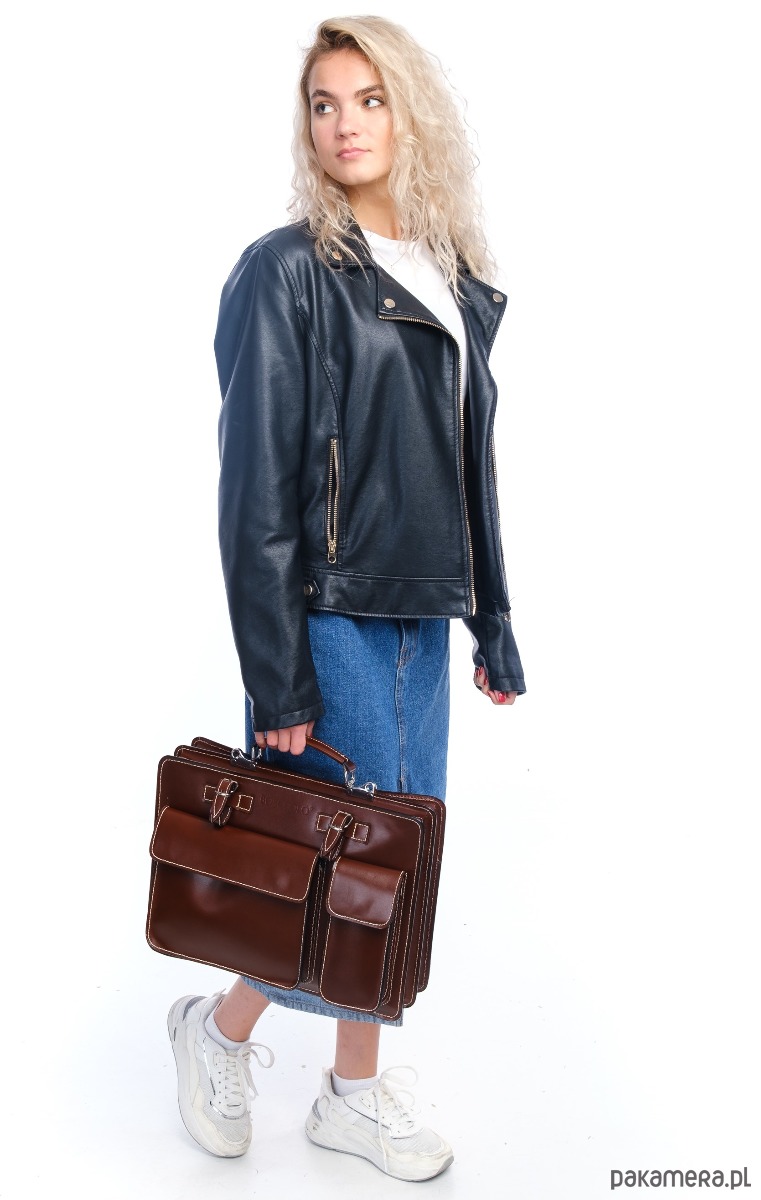 Skórzana Teczka - Aktówka - paski do przypięcia parasola (7091)