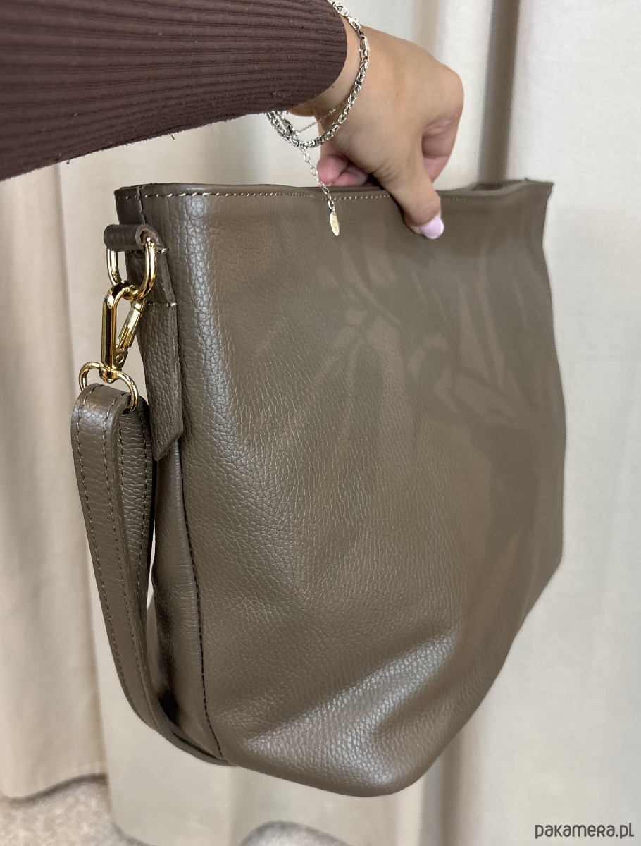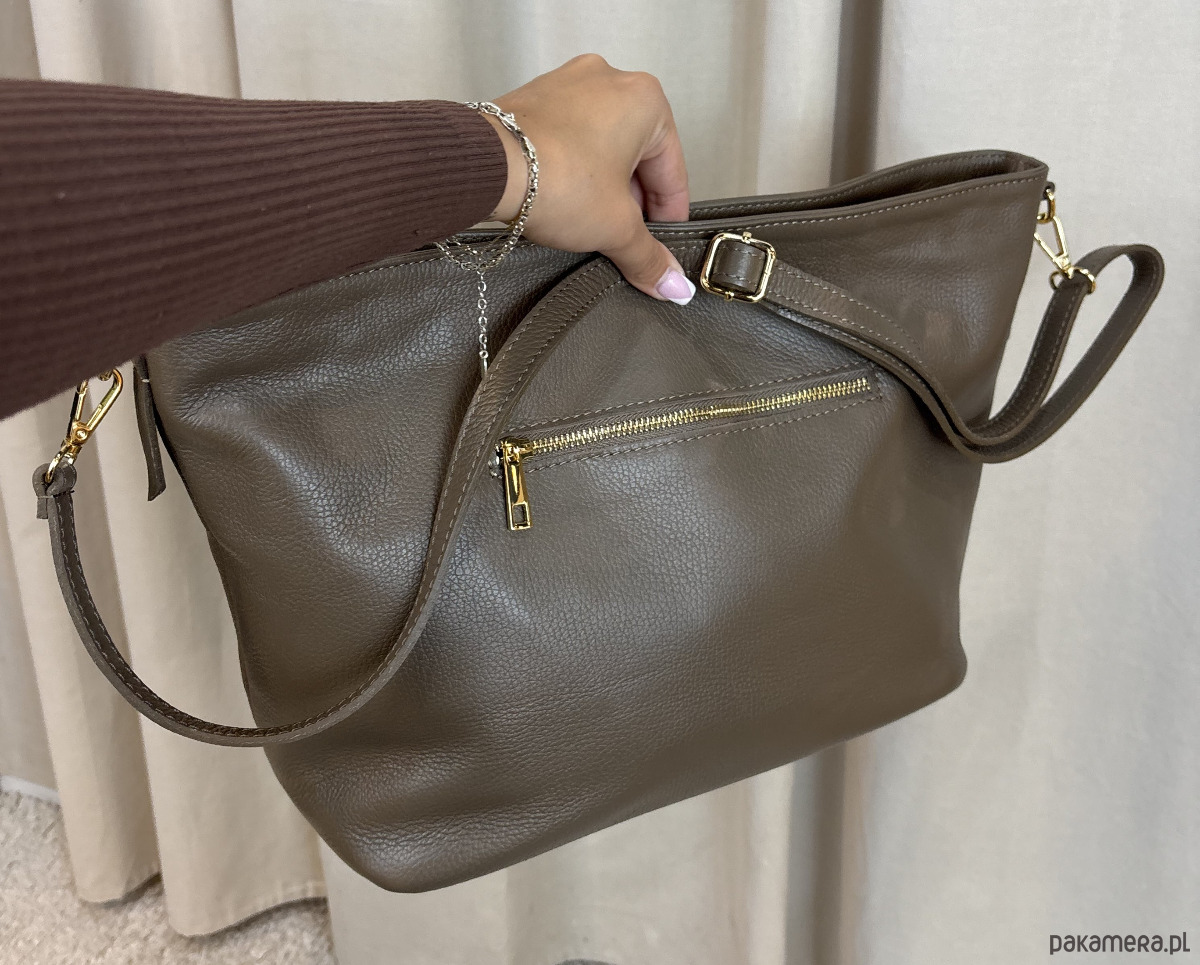 Skórzana torba włoskiej produkcji z długim paskiem.