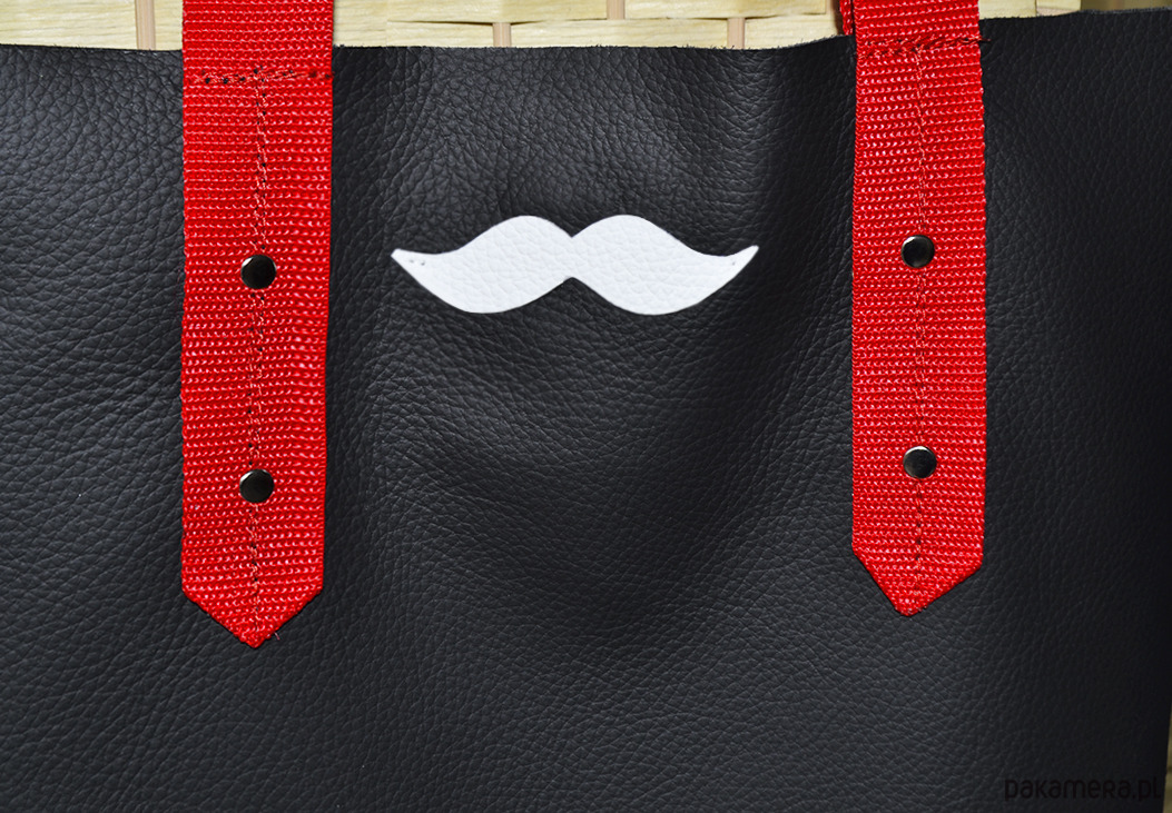 Front zdobią stylowe wąsy wycięte z białej skórki naturalnej.