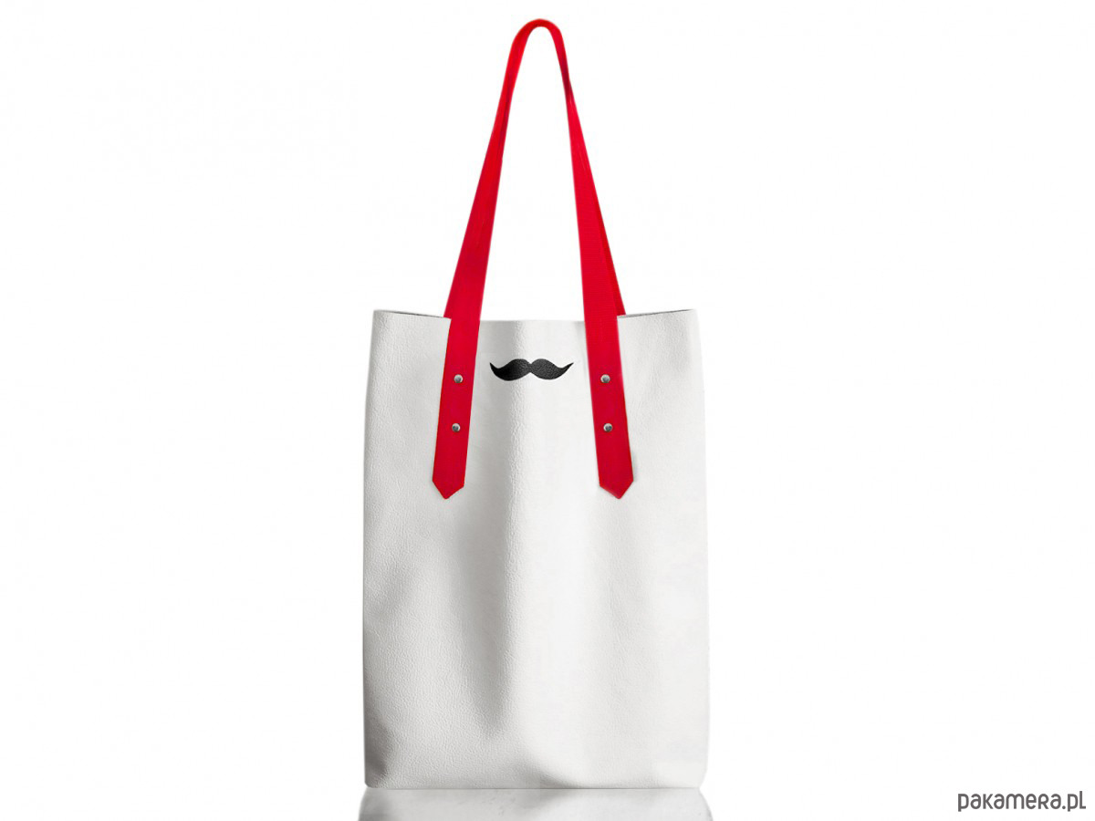 Front zdobią stylowe wąsy wycięte z czarnej skórki naturalnej.