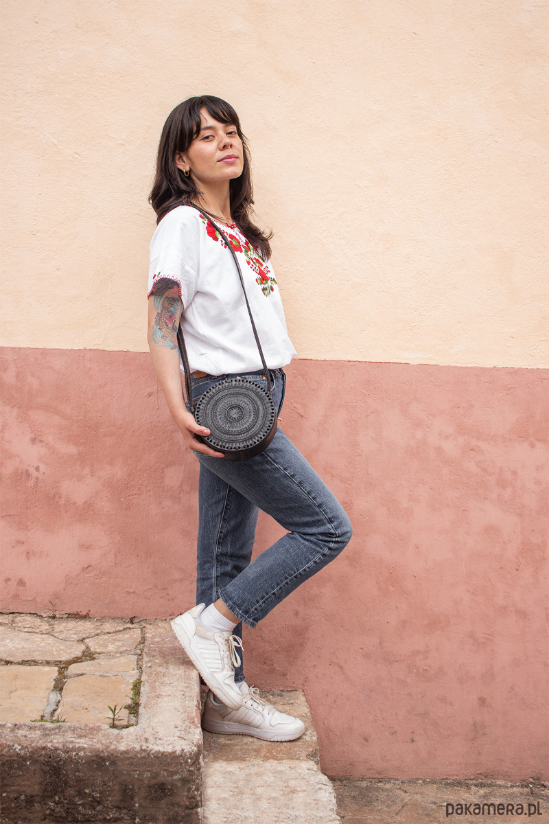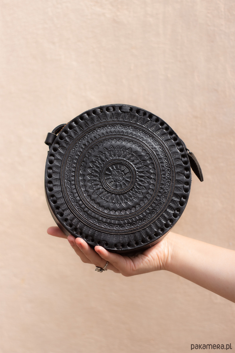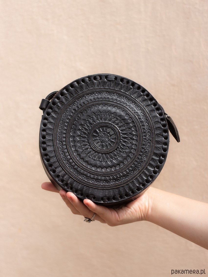 Mała, okrągła i urocza. Najnowszy szyk mody tego roku. Starannie wykonana ze skóry naturalnej, zdobiona pięknymi ręcznie tłoczonymi wzorami, które sprawiają, że jak każda nasza torebka, jest unikatem. Mieści telefon komórkowy oraz najpotrzebniejsze kobiece rzeczy.