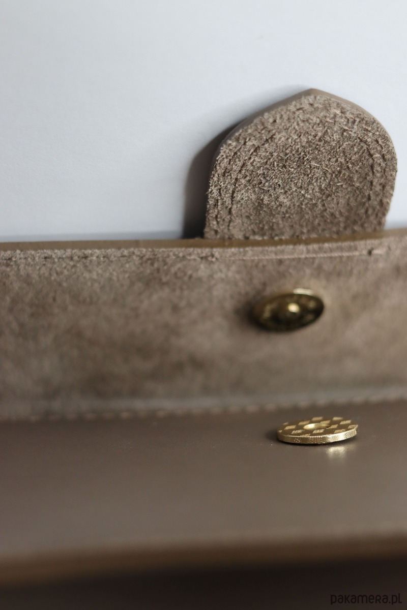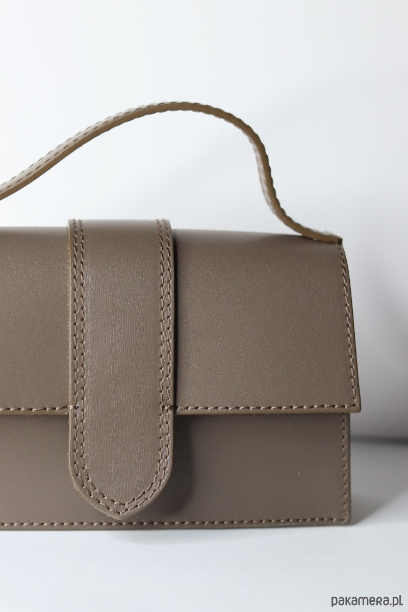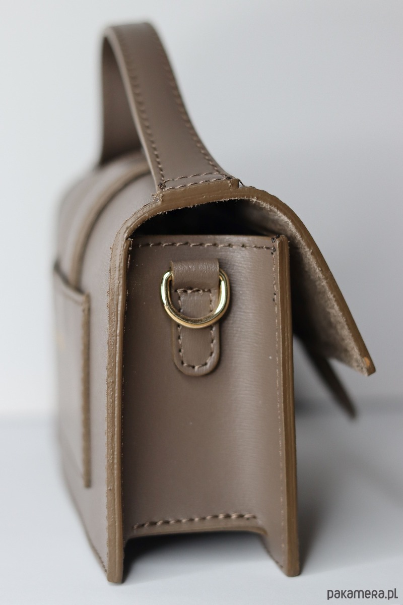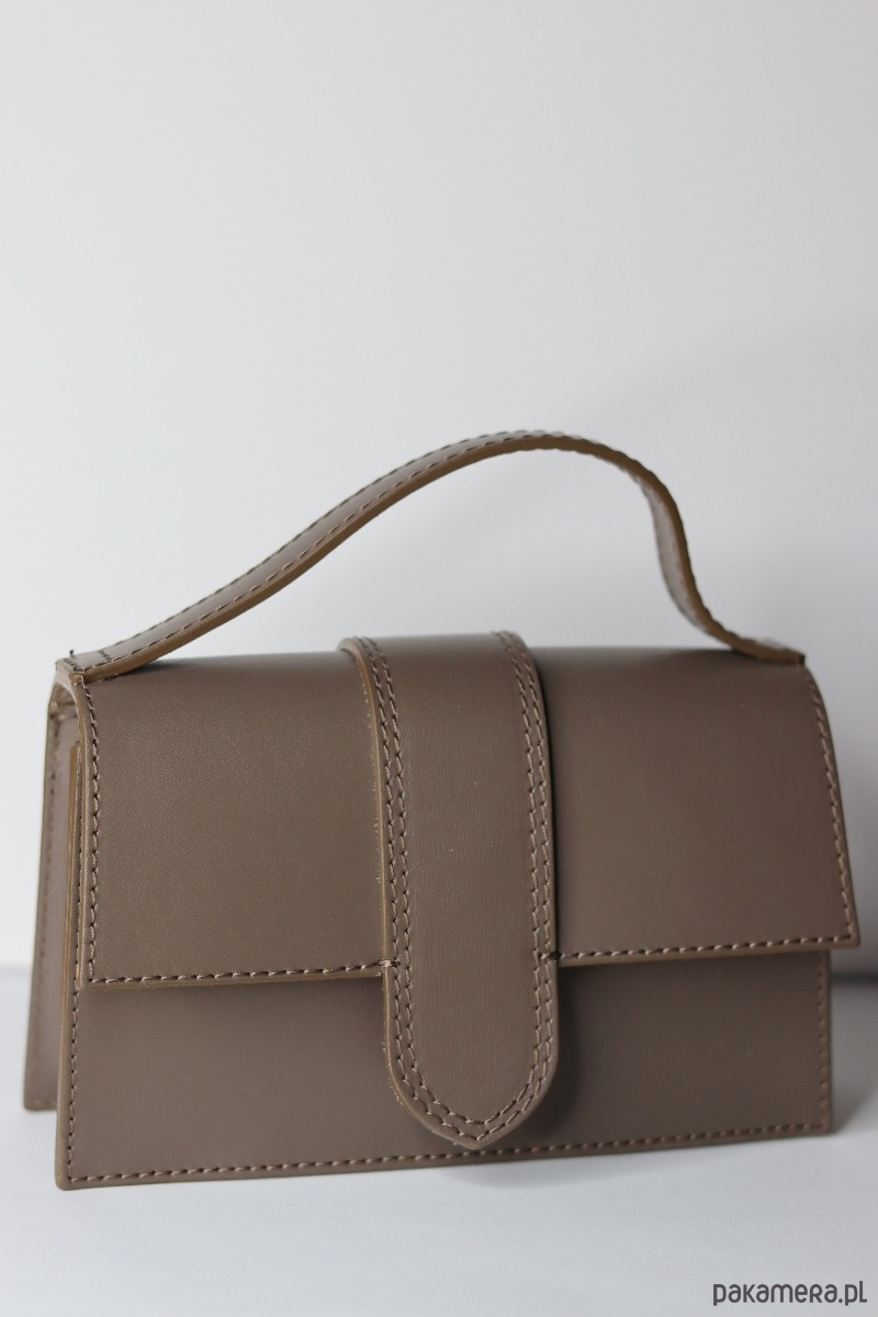 Torebka na ramię marki Cassi. Torebka zaprojektowana przez polska markę, uszyta we Włoszech. Wykonana jest ze skóry naturalnej, gładkiej w kolorze taupe/szary/brąz . Zamykana na magnetyczny zatrzask z tyłu wsuwana kieszeń z wybitą nazwą marki Cassi . Odpinany, regulowany cienki pasek na ramię. Wewnątrz jedna komora, oraz maleńka kieszonka. Okucia w kolorze złotym.