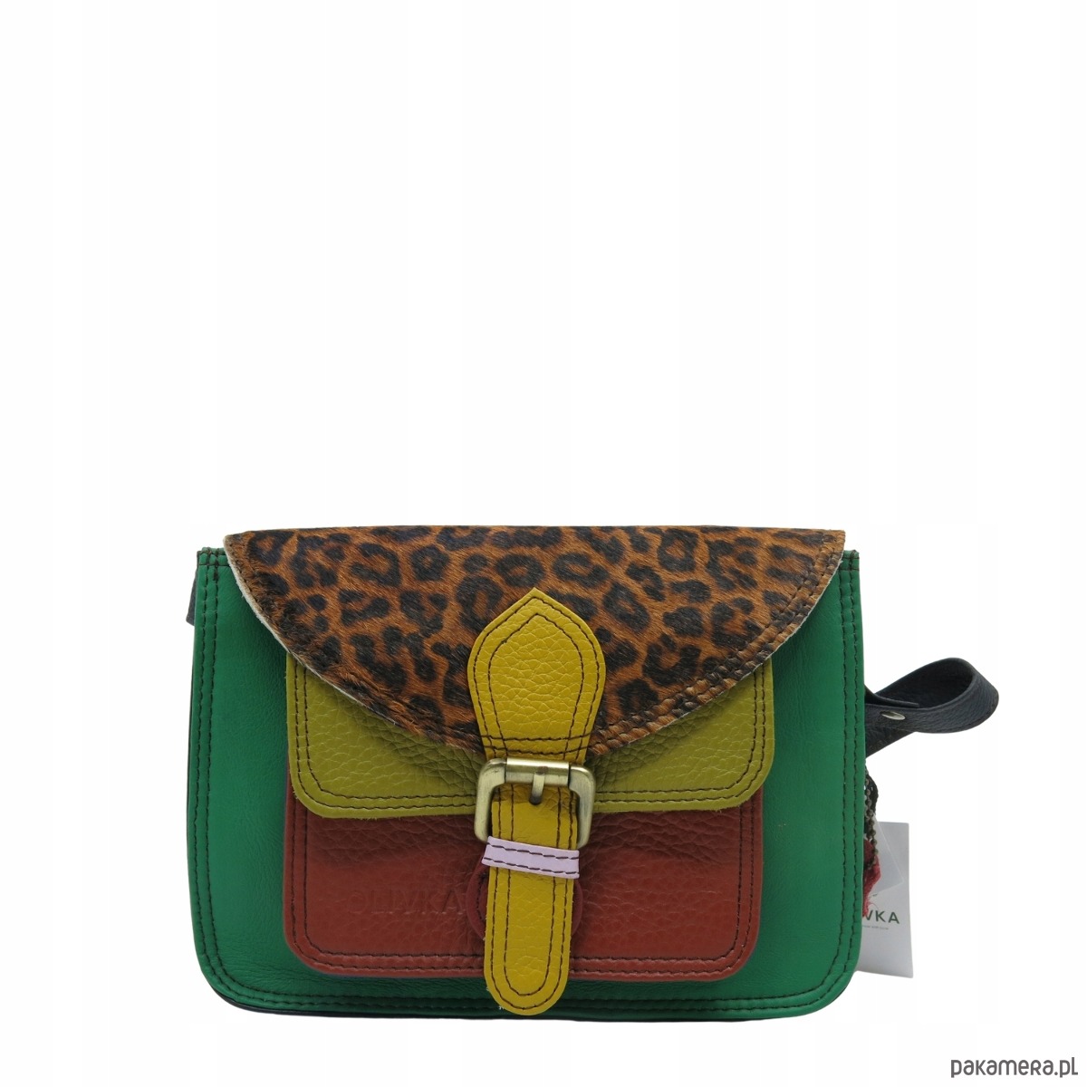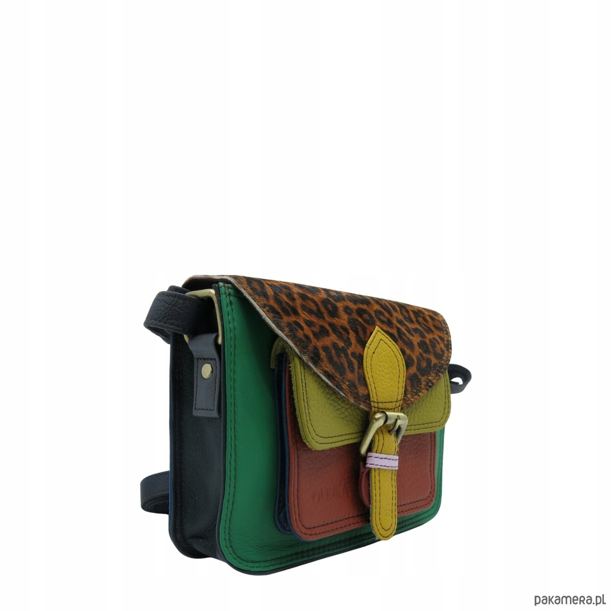 Skórzana torebka damska regulowany pasek oryginalna listonoszka eko OLIVKA