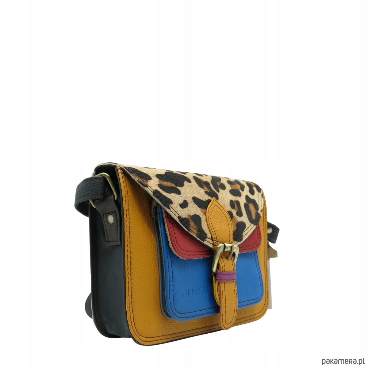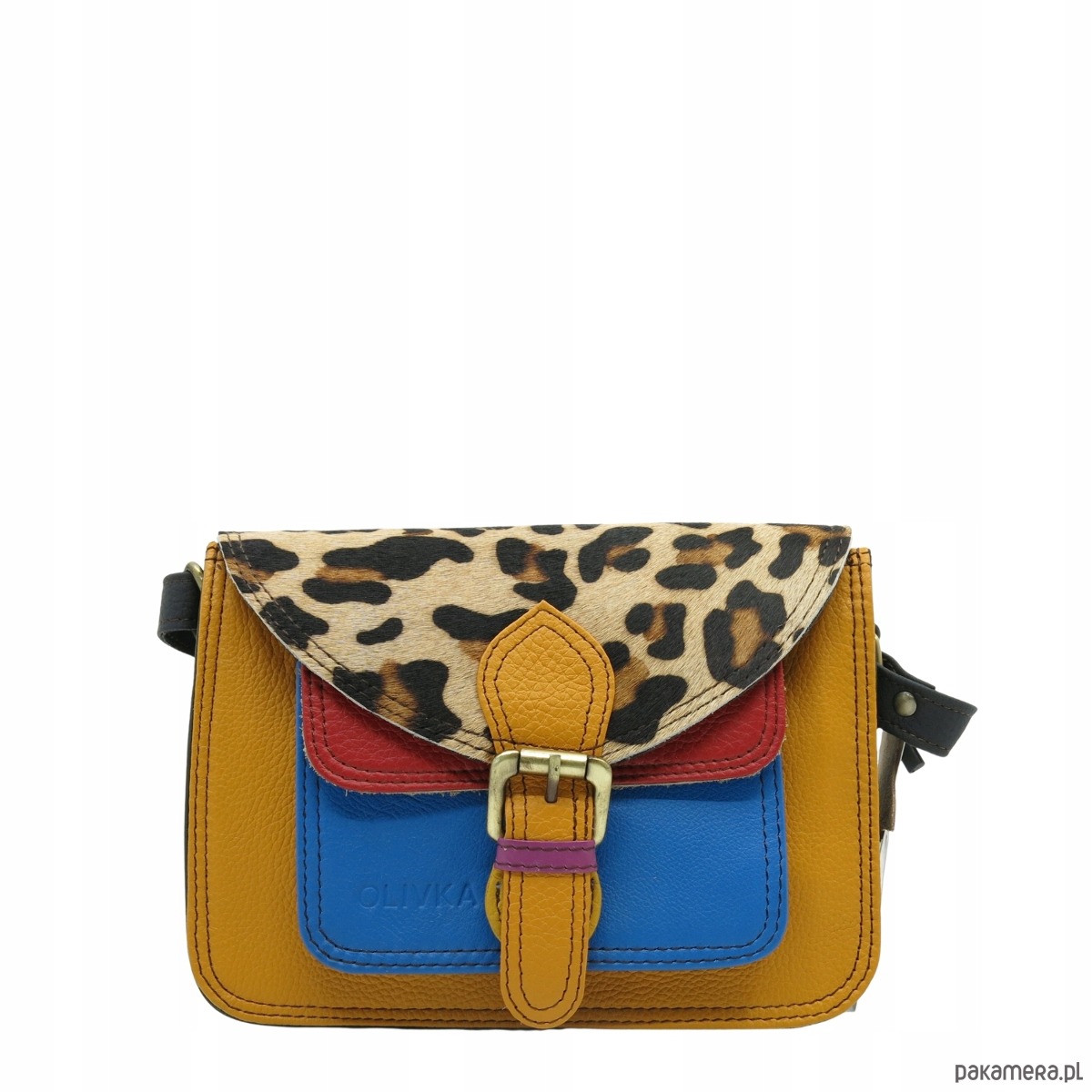 Skórzana torebka damska regulowany pasek oryginalna listonoszka eko OLIVKA