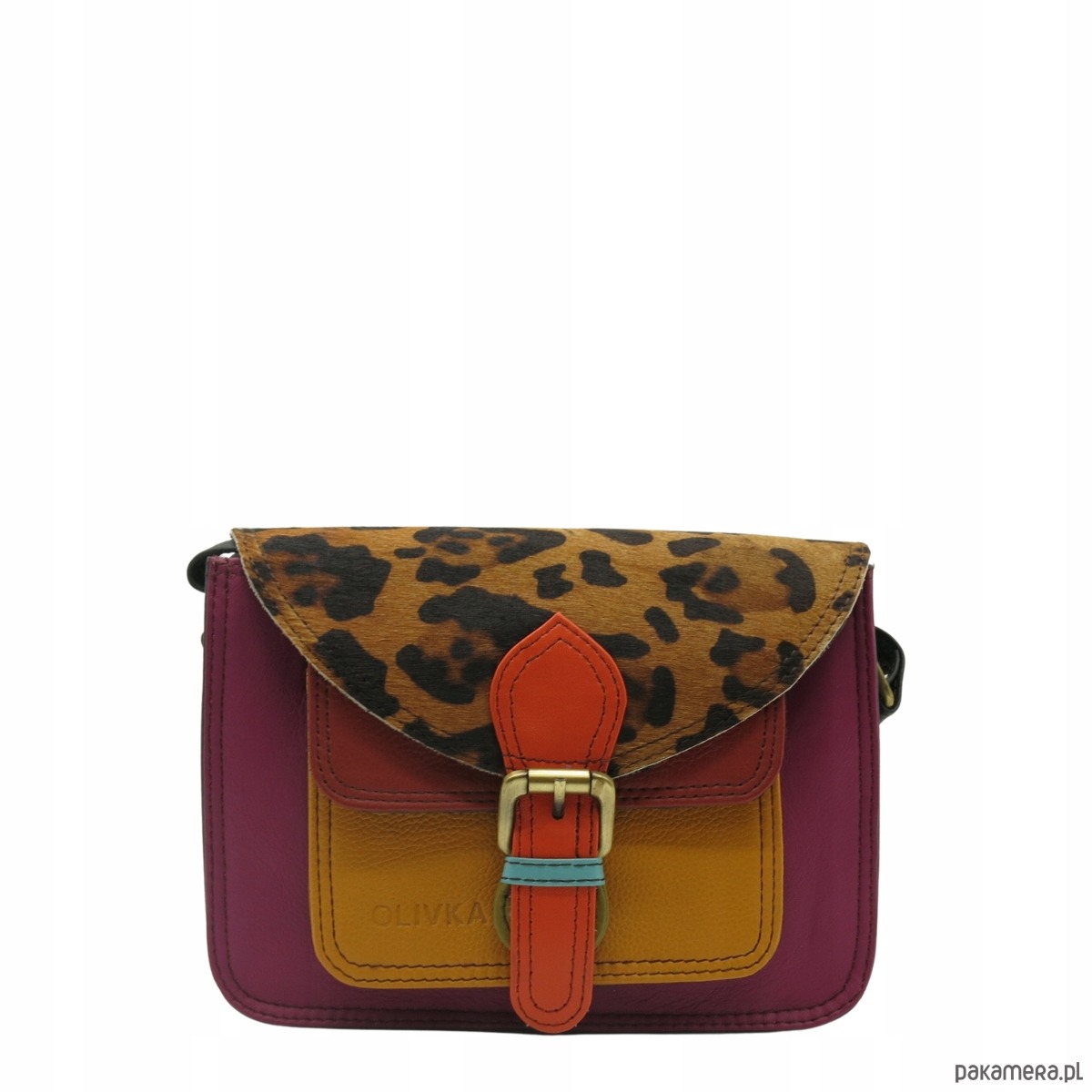 Skórzana torebka damska regulowany pasek oryginalna listonoszka eko OLIVKA