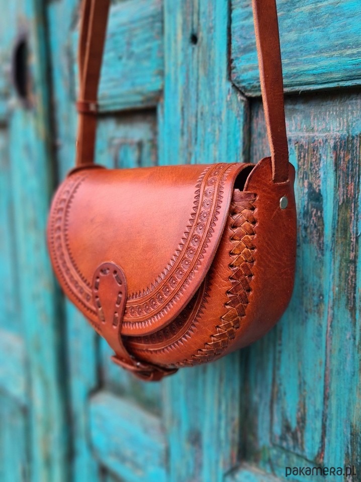 Skórzana torebka góralska ręcznie robiona Nicte wzory zakopane