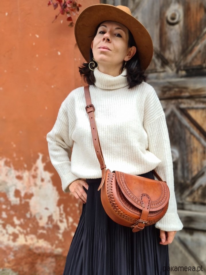 Torebka skórzana ręcznie robiona góralska Nicte wzory zakopane