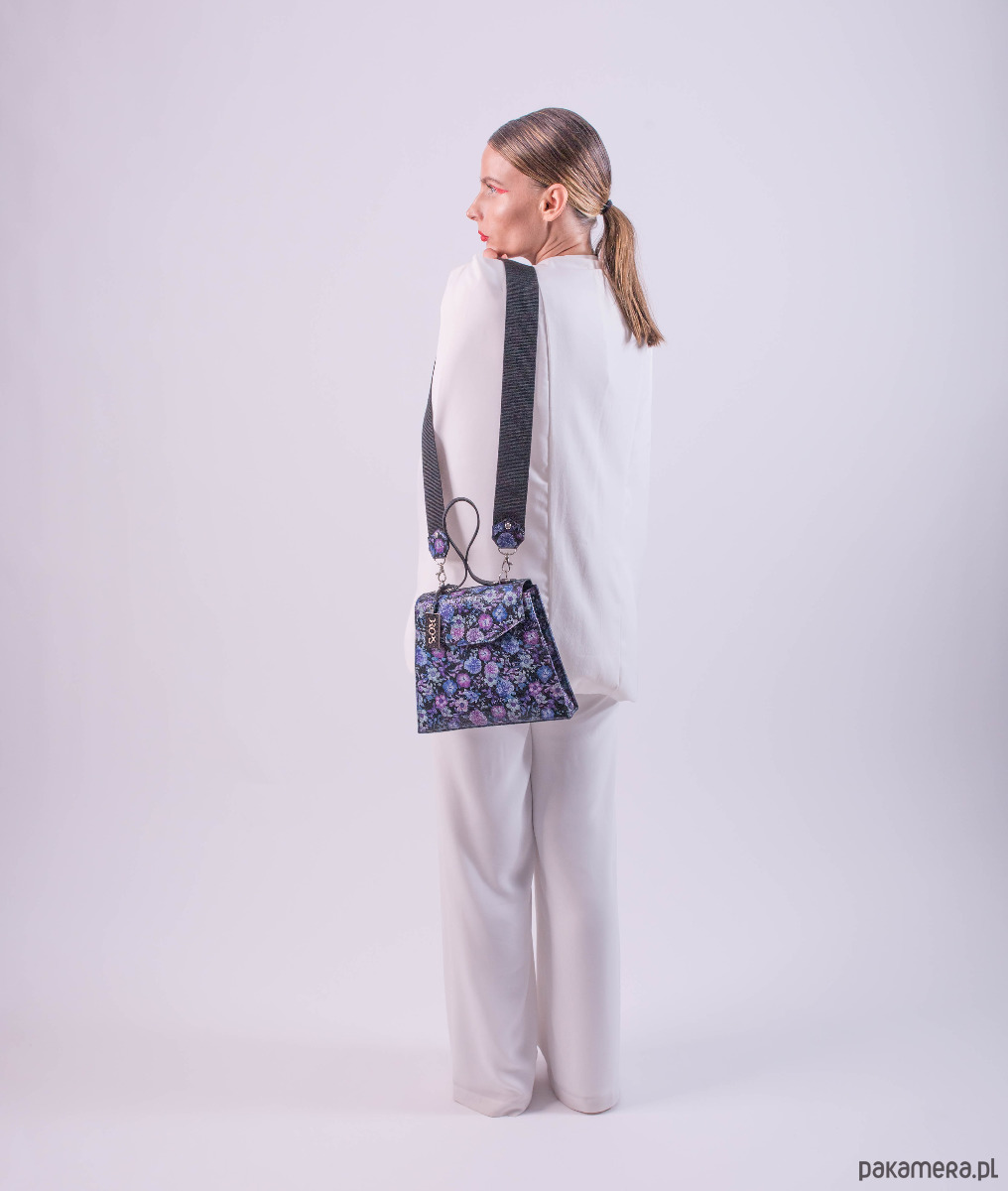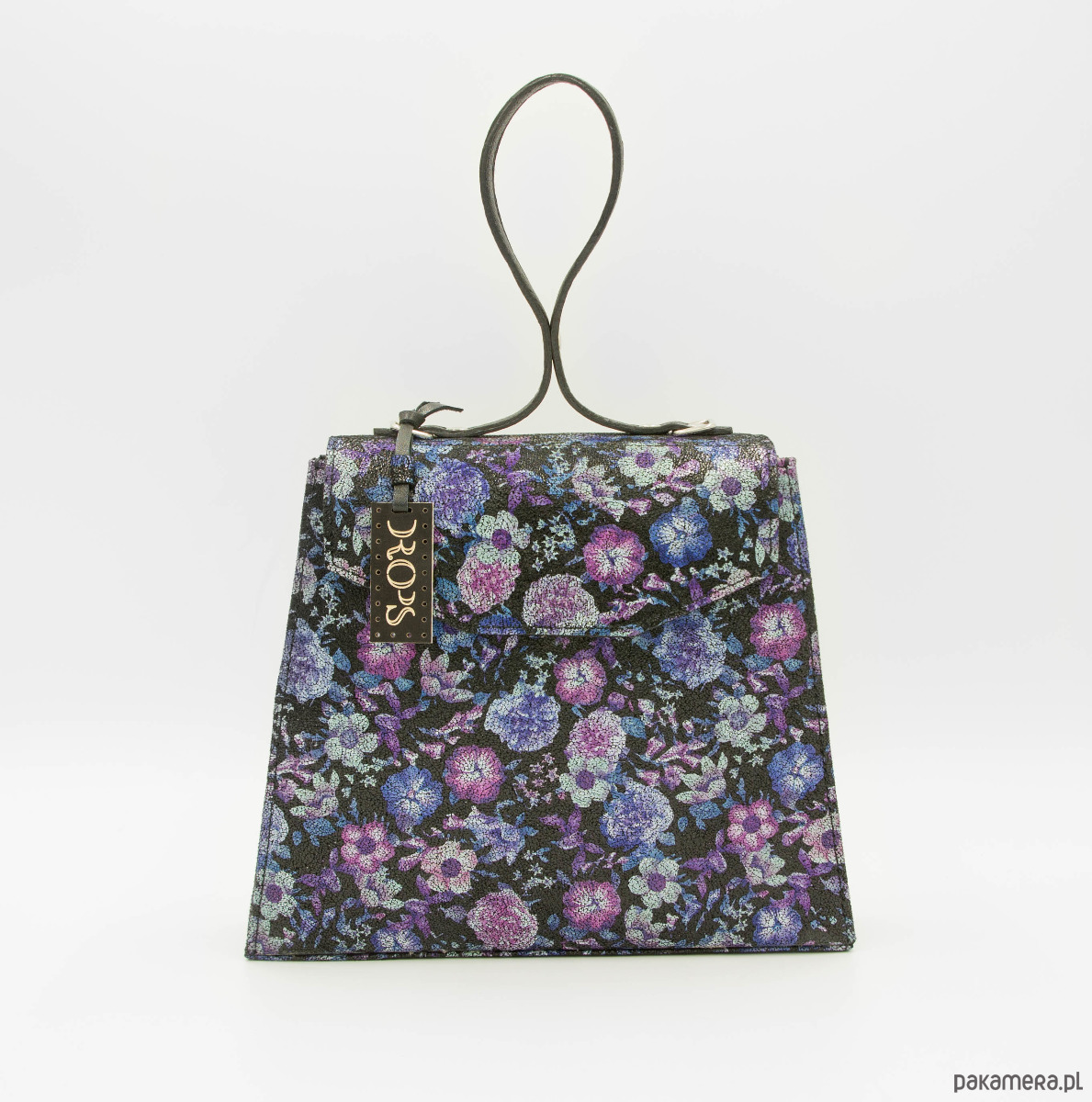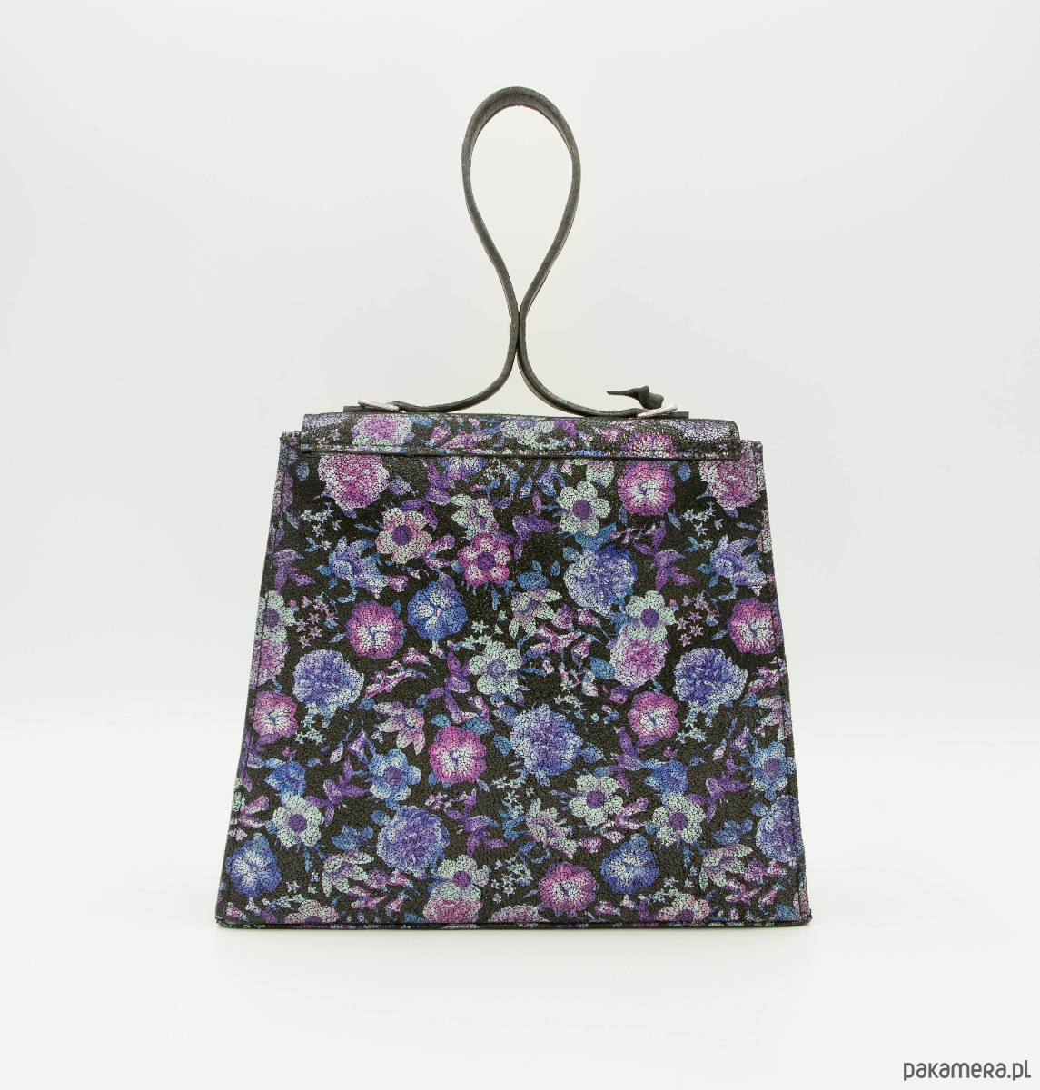 Poręczna i elegancka torebka uszyta ze skóry naturalnej. Torba będzie doskonałym dopełnieniem zarówno klasycznej stylizacji, jak i tej utrzymanej w najnowszych trendach. Torebka No. 5 wykonana jest ze skóry o pięknym kwiecistym wzorze utrzymanym w czarno-fioletowej kolorystyce. Wyjątkowego charakteru torebce dodaje rączka w kształcie pętelki. No. 5 można nosić w ręku jako elegancki dodatek lub doczepić szeroki pasek i przewiesić dla wygody przez ramię. Do torebki dołączona jest drewniana zawieszka z firmowym logo DROPS. Torebka No. 5 w całości szyta jest ręcznie. Produkt handmade.