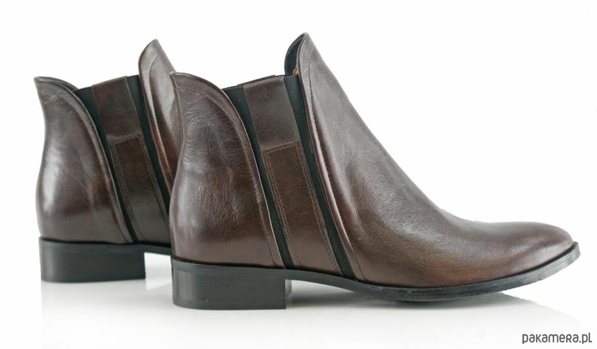 Skórzane sztyblety ze skóry naturalnej, wsuwane z gumkami po bokach, dopasowujące się do nogi.