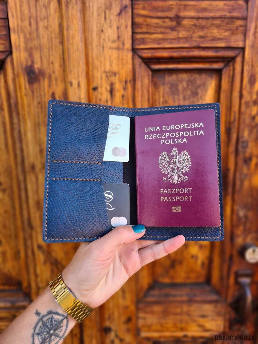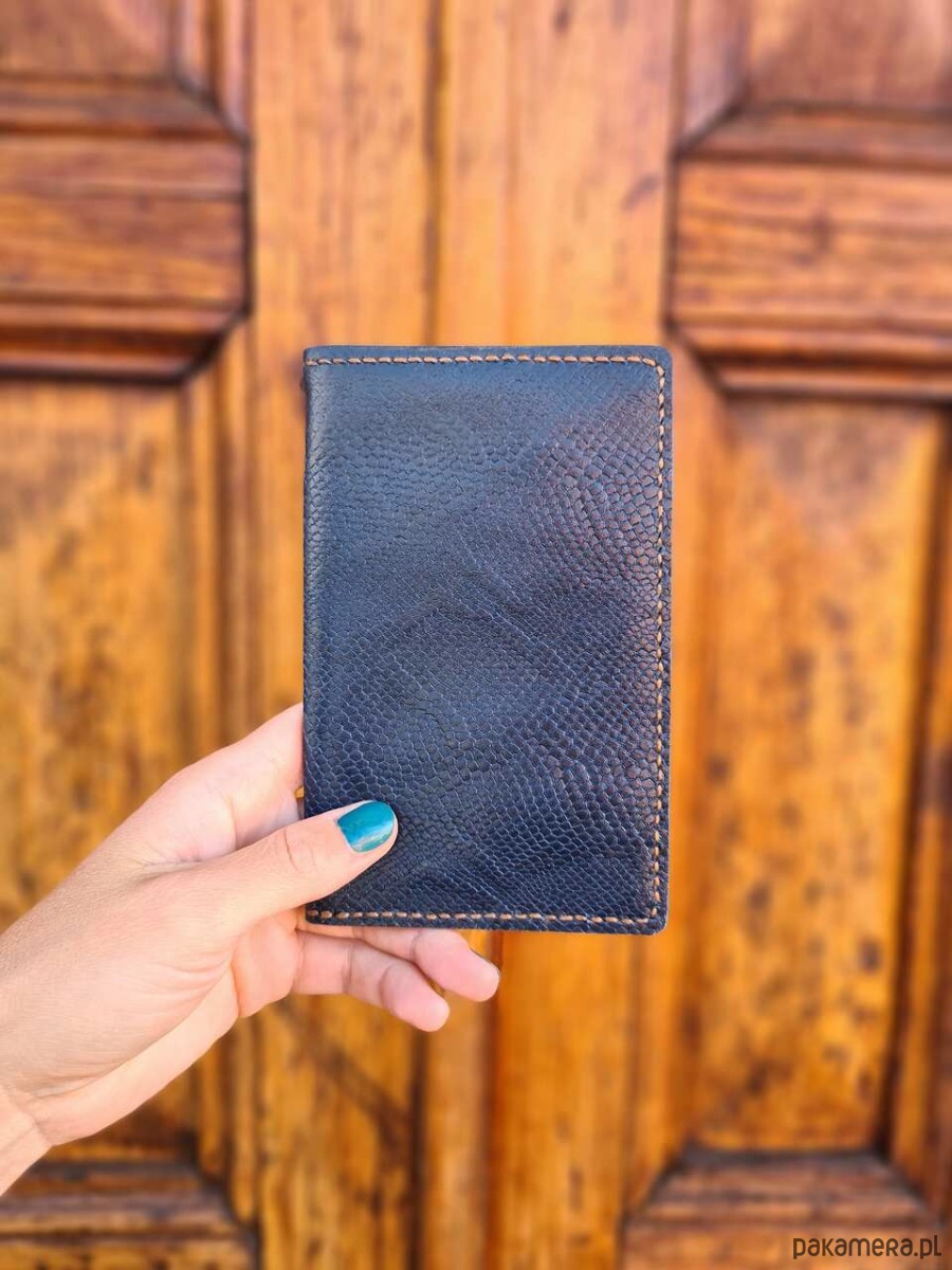 Skórzane etui pokrowiec na paszport granatowy skóra naturalna ręcznie robine