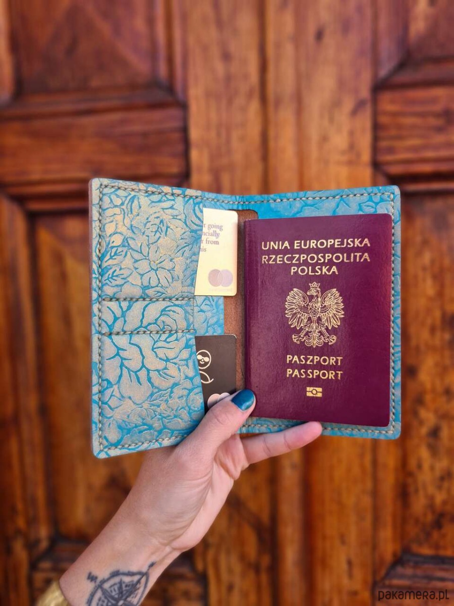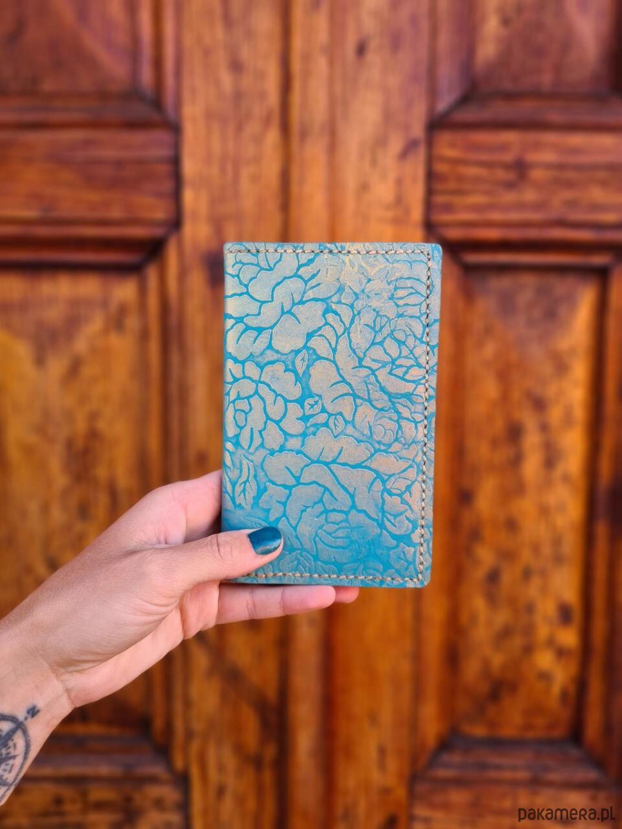 Skórzane etui pokrowiec na paszport turkusowy skóra naturalna ręcznie robine