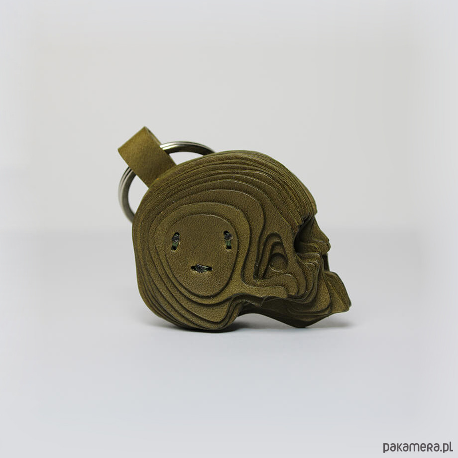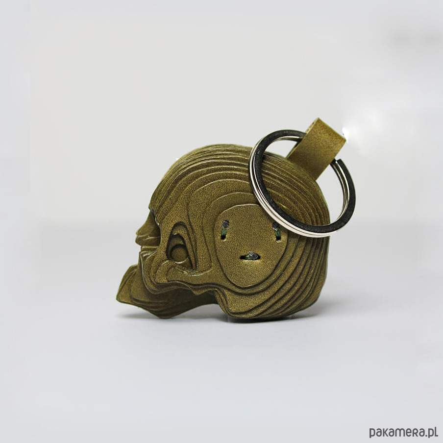 Skórzany brelok Czaszka oliwka. Wyjątkowy dodatek dla osób ceniących styl, oryginalność i rzemieślniczą jakość. Każdy brelok jest wycinany oraz szyty ręcznie, dzięki czemu otrzymujesz produkt jedyny w swoim rodzaju. Wykonany z naturalnej skóry wysokiej jakości, jest trwały, elegancki i idealny jako ozdoba do kluczy, torby lub plecaka. Ten ręcznie robiony brelok ze skóry to doskonały pomysł na prezent dla fanów rockowego stylu, motocyklistów lub osób, które lubią niebanalne akcesoria. Symbol czaszki nadaje mu charakteru i wyjątkowego wyglądu. Dodatkowo istnieje możliwość zamówienia breloku w innym kolorze – dopasuj go do swojego stylu i stwórz unikatowy dodatek tylko dla siebie.