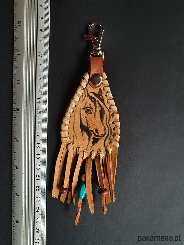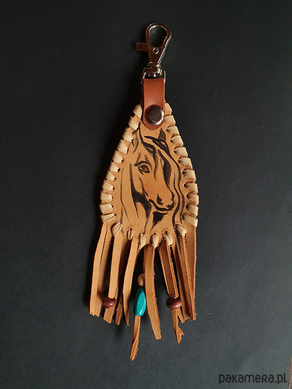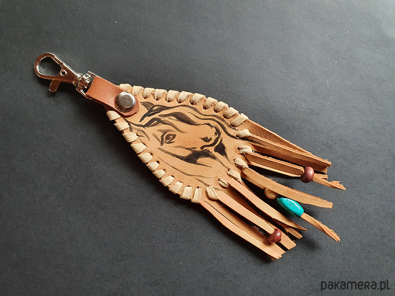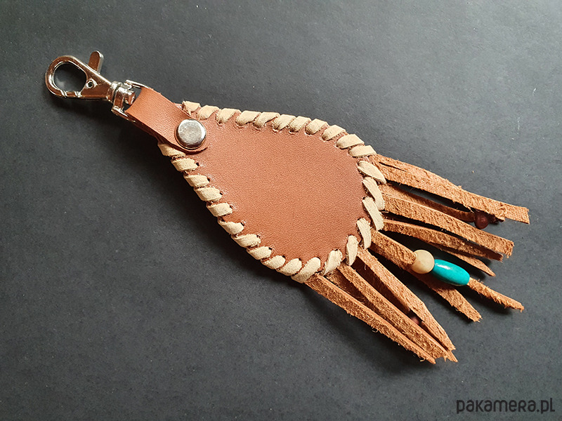 brelok uszyty ze skóry naturalnej,