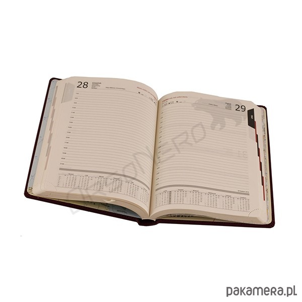 -Układ: 1 dzień na 1 stronie, sobota i niedziela na 1 stronie. Przed każdym miesiącem terminarz miesięczny,