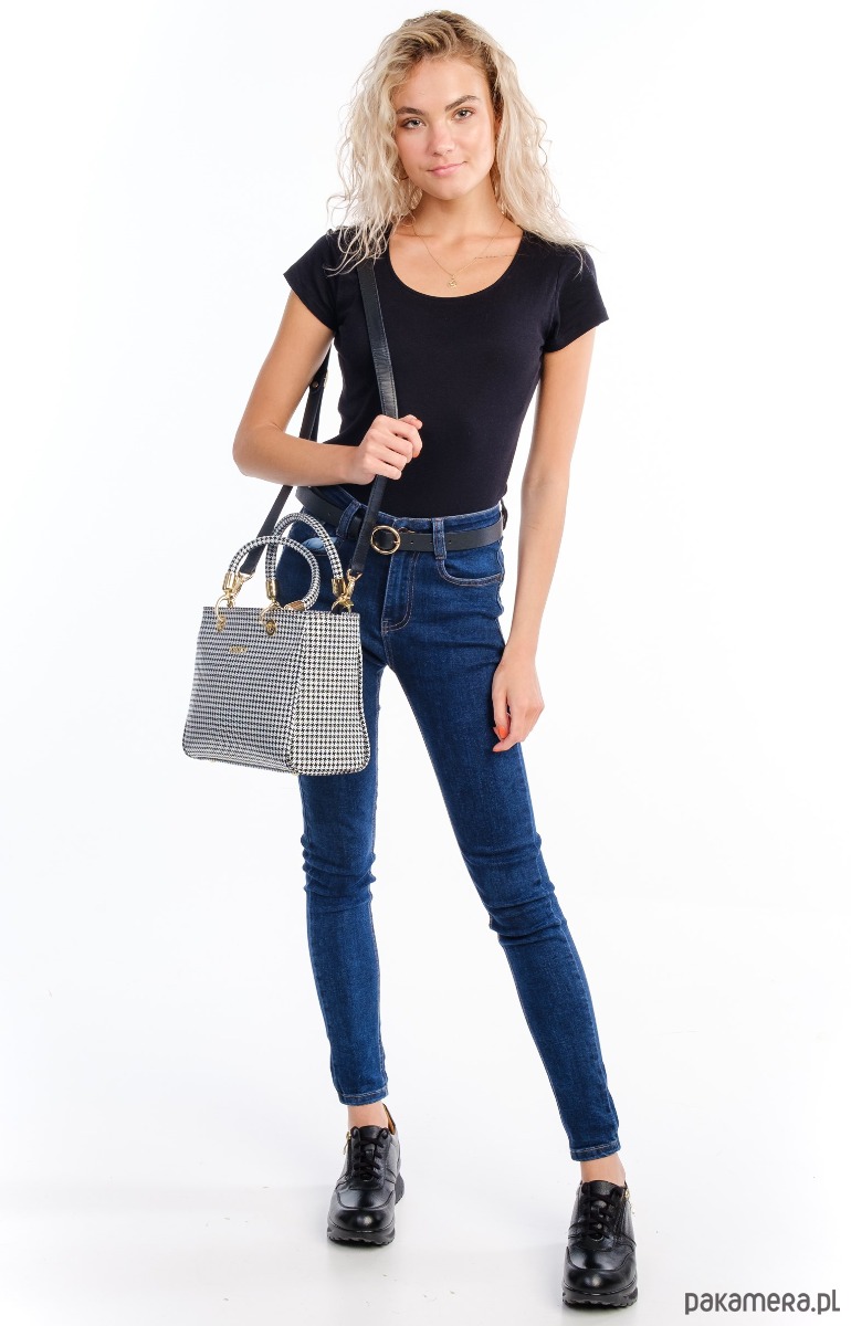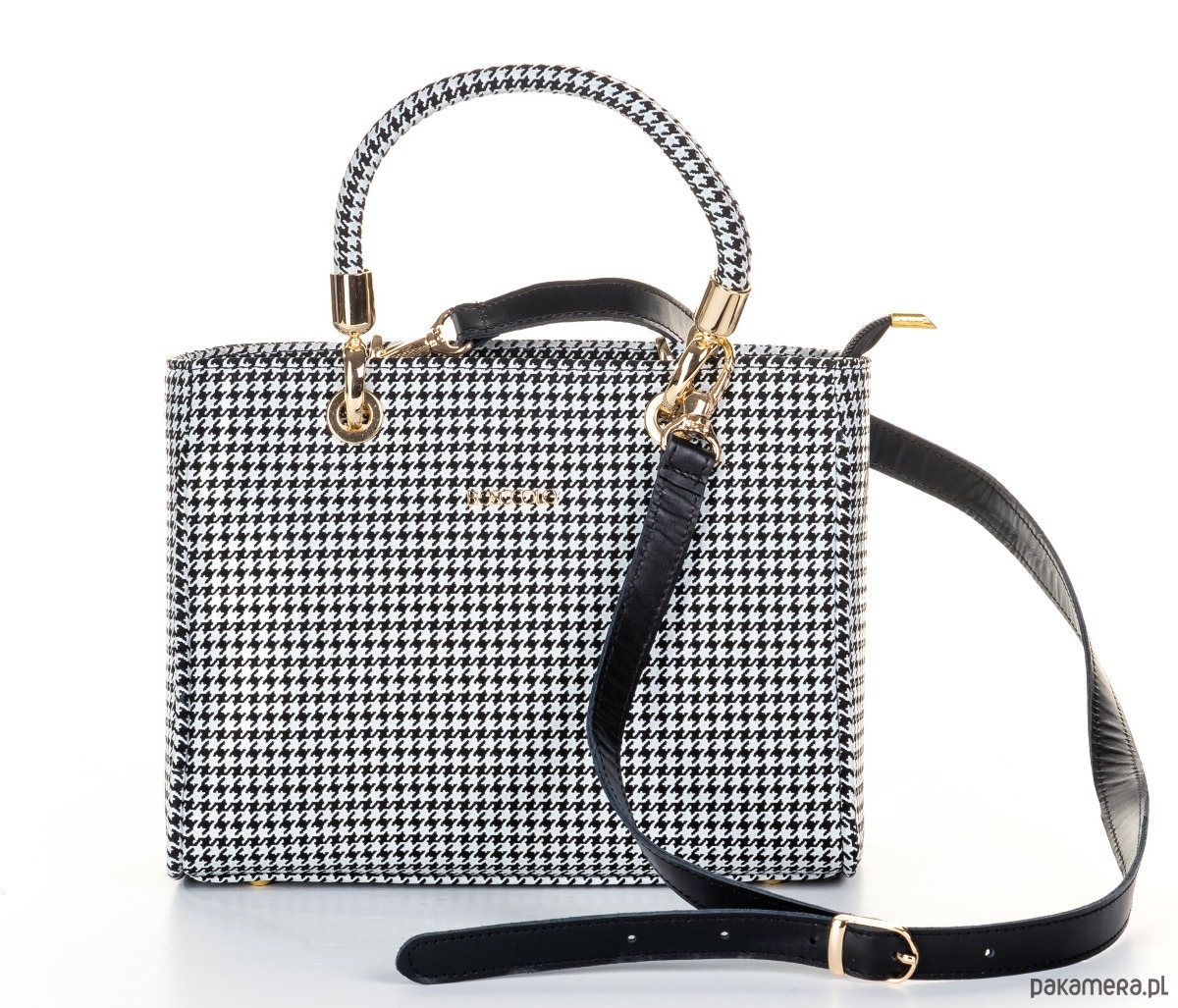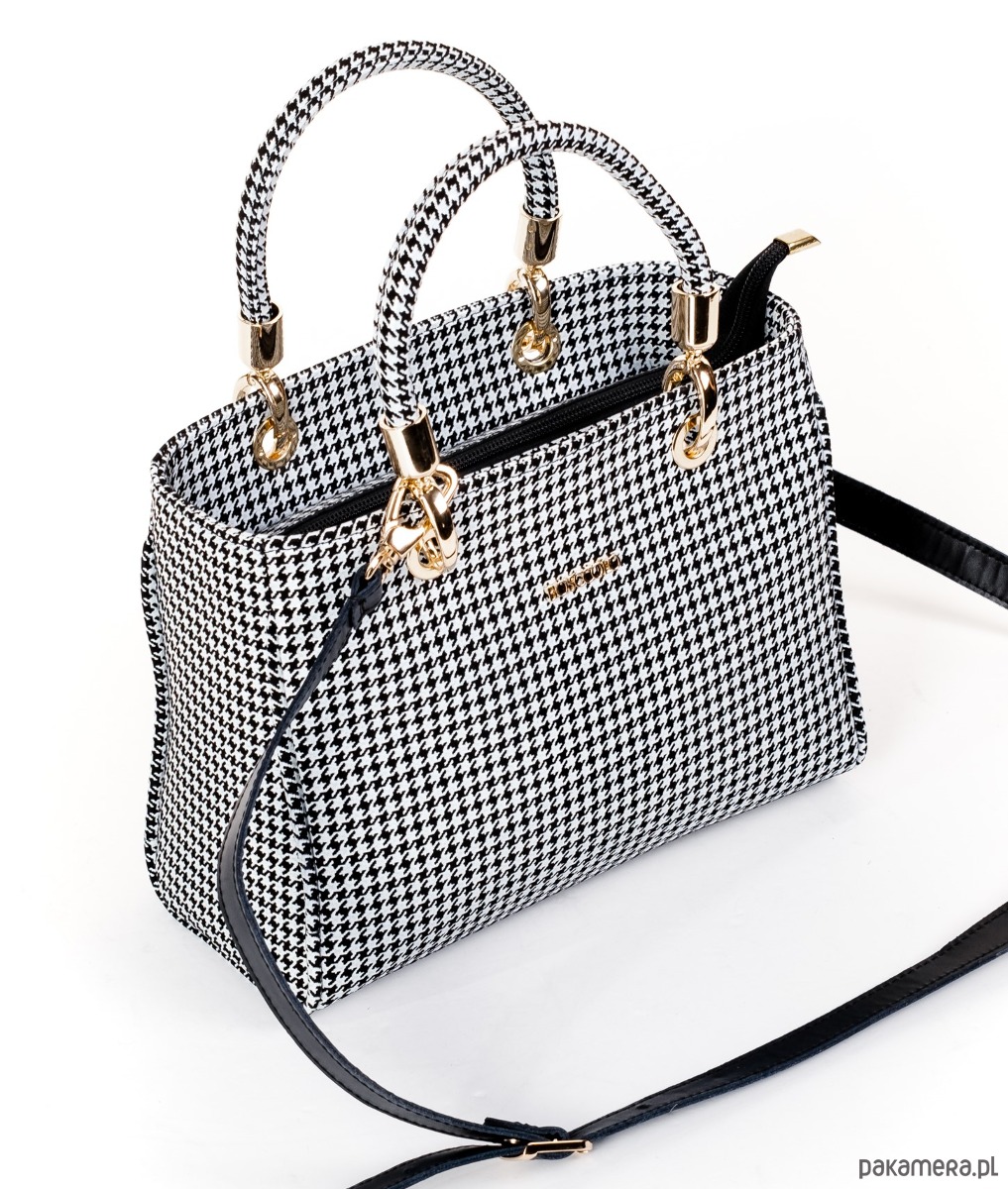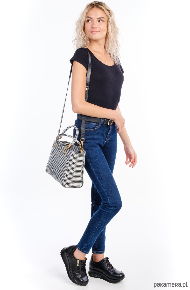Elegancka torba ze skóry naturalnej, ponadczasowa pepitka, idealna do codziennych stylizacji.