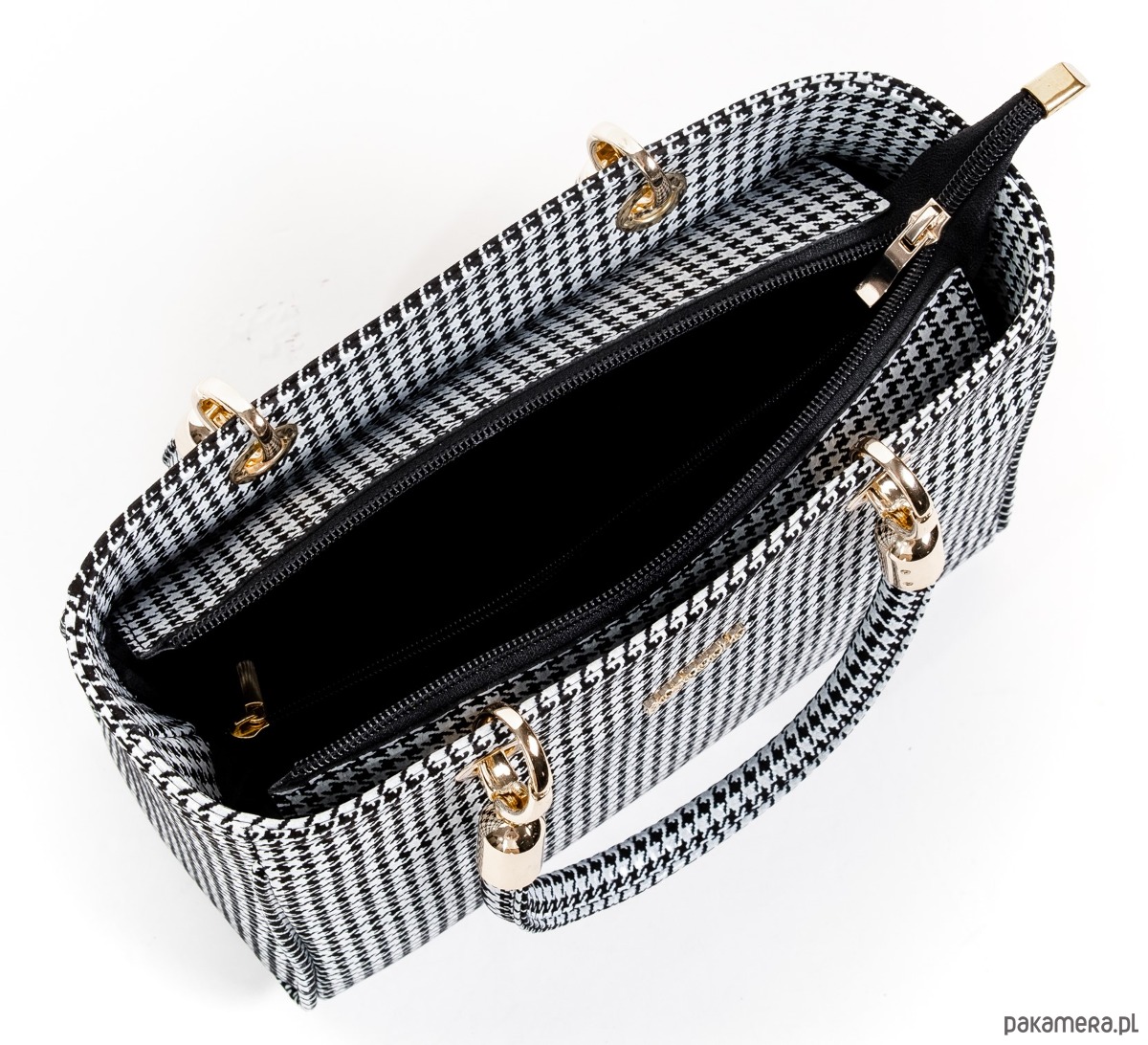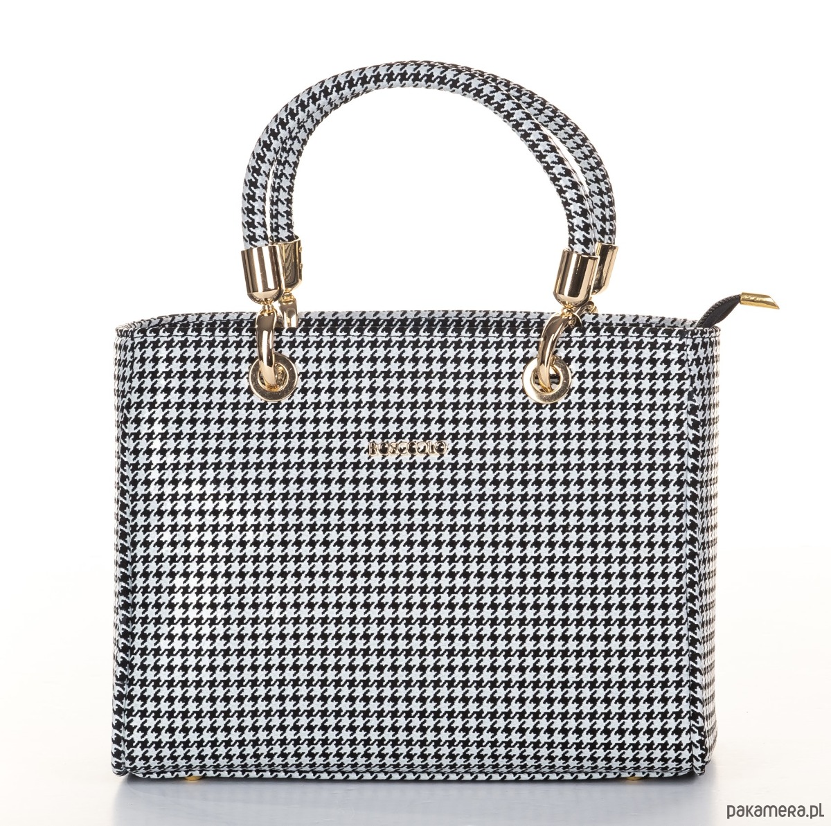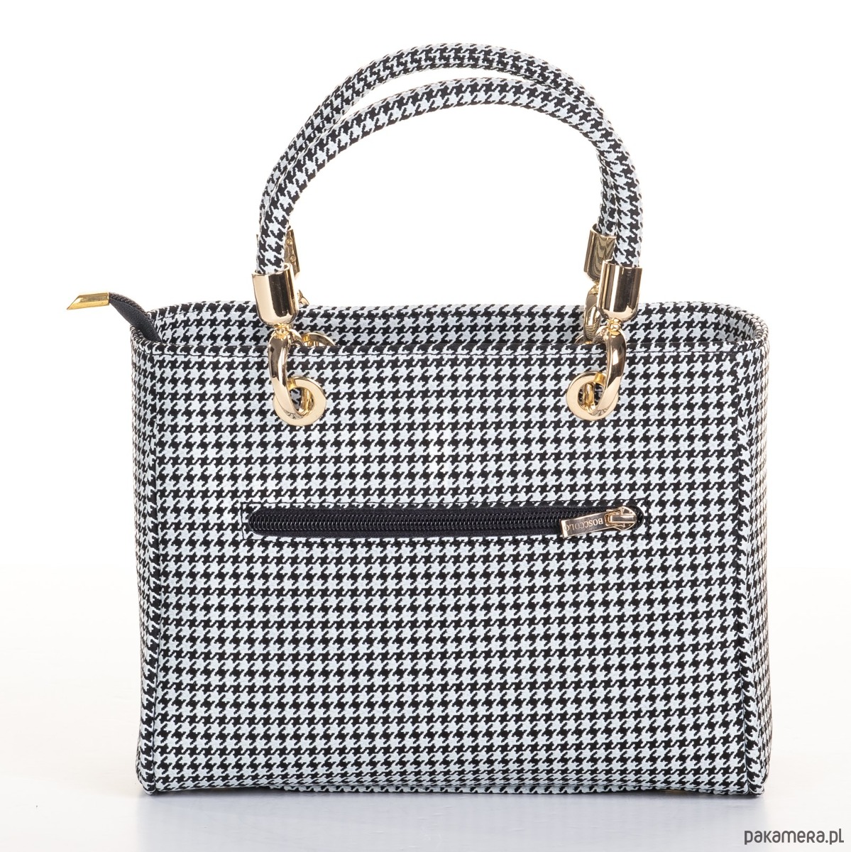 Elegancka torba ze skóry naturalnej, ponadczasowa pepitka, idealna do codziennych stylizacji.