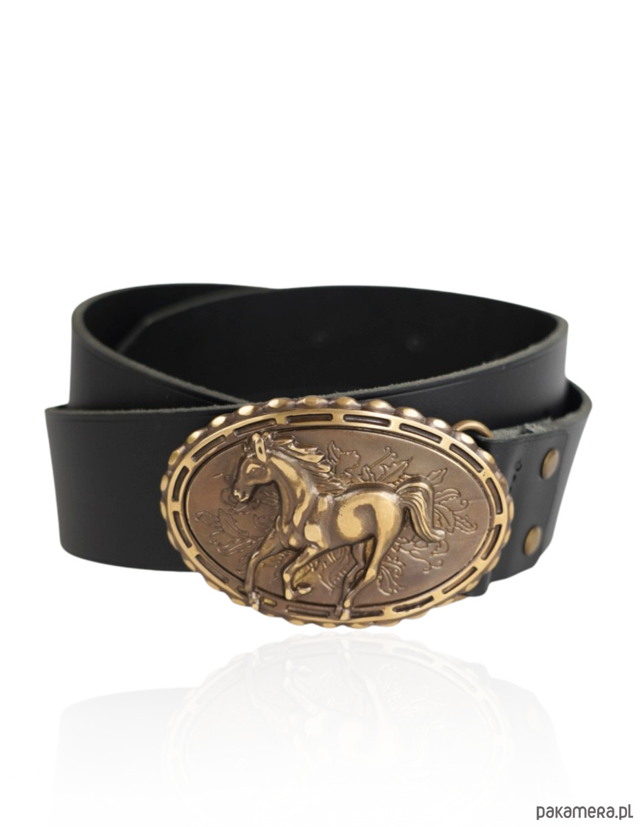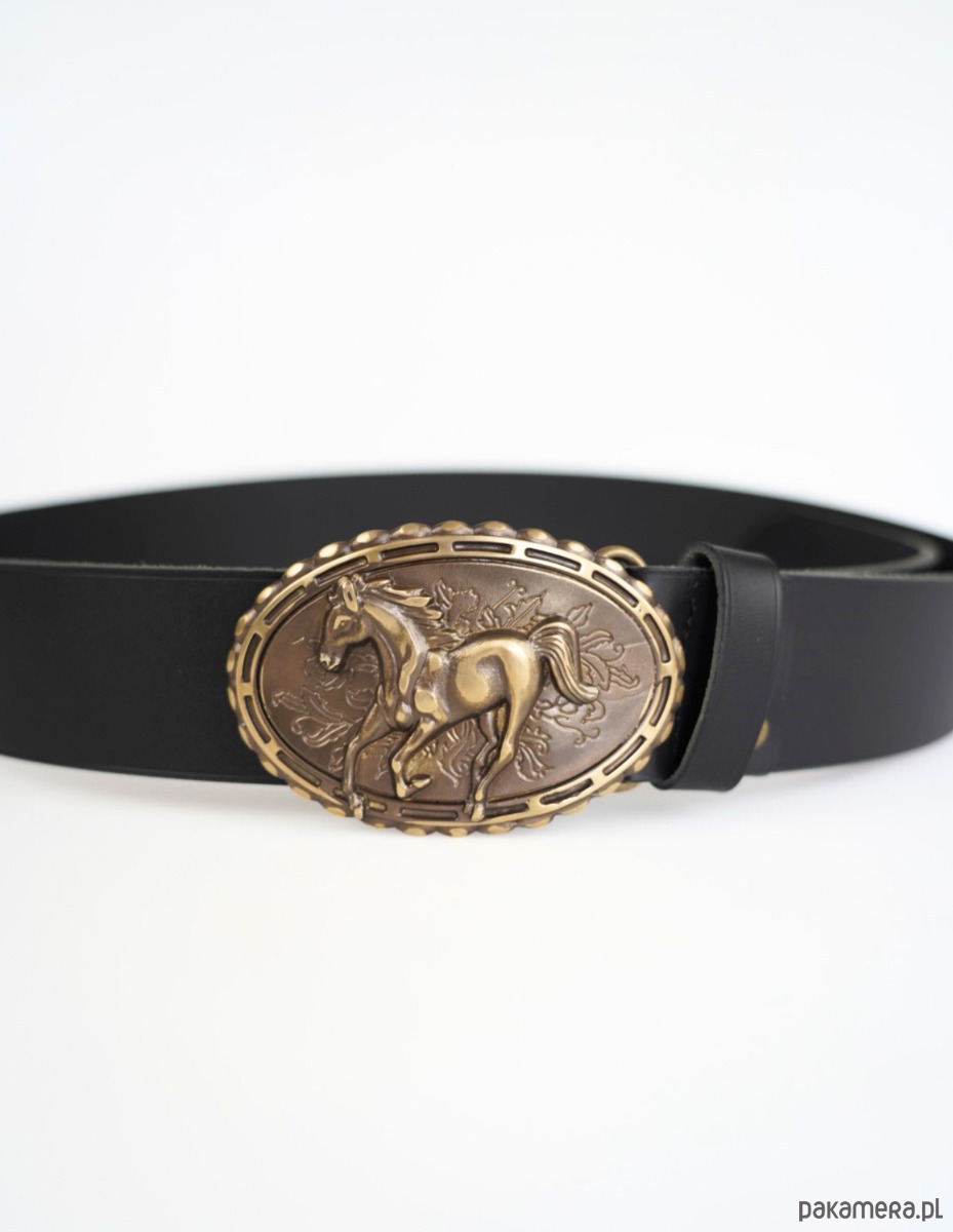Solidna klamra w kolorze starego złota z detalicznym tłoczeniem konia nadaje paskowi unikalny, westernowy charakter. Idealnie sprawdzi się zarówno do jeansów, jak i do codziennych stylizacji w stylu casual czy country.