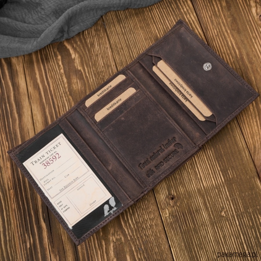 - Właściwości: z okienkiem, z miejscem na zdjęcia, z kieszenią na monety, RFID protection, kompaktowy
