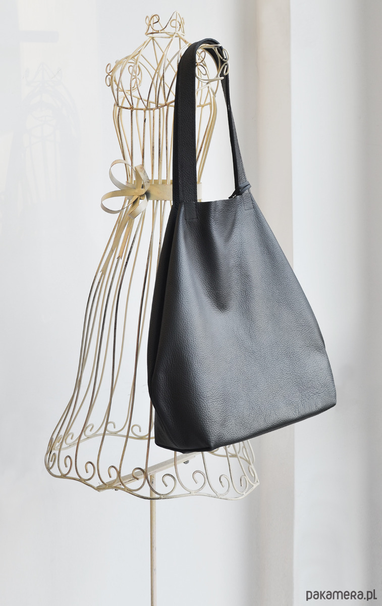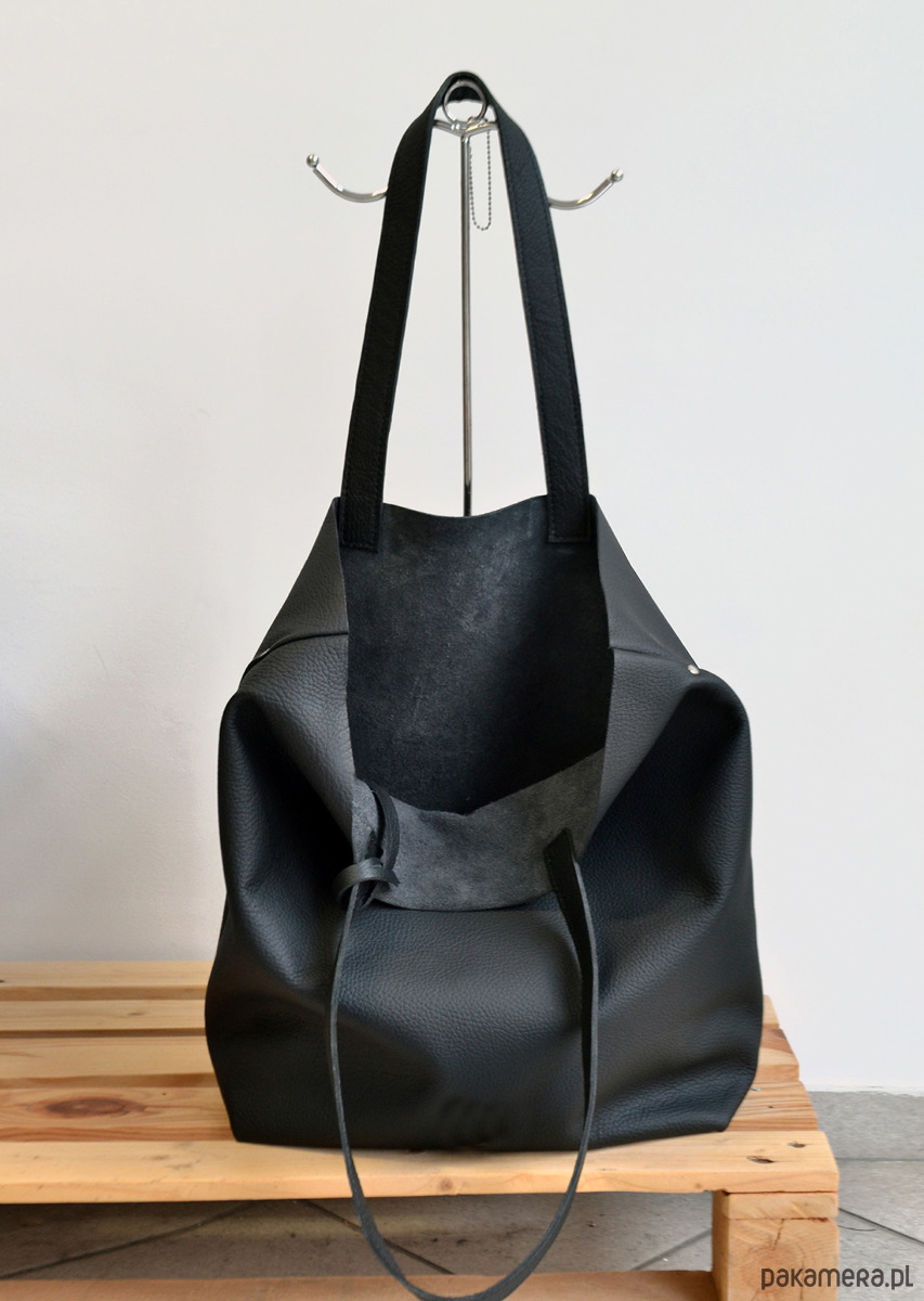 Skórzany worek na ramię czarny XL