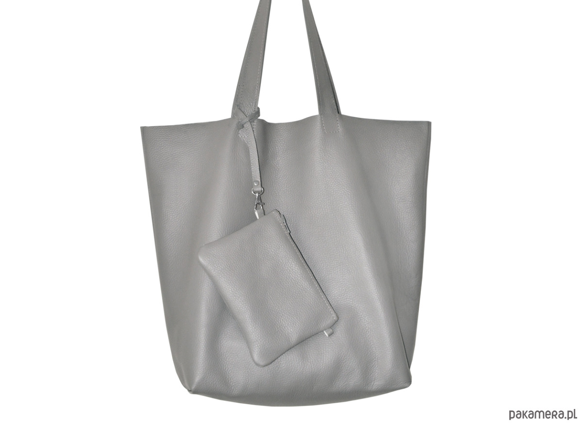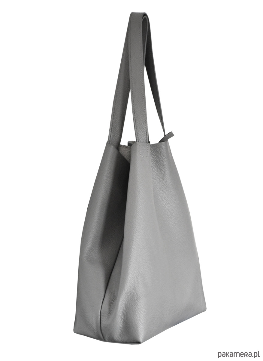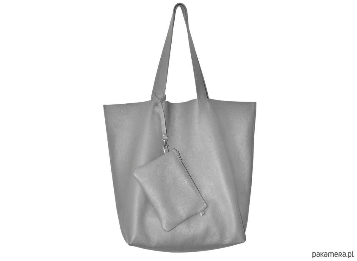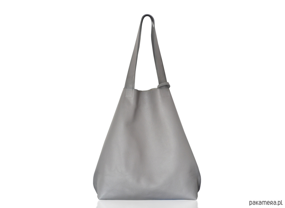 Szary worek na ramię wykonany z najwyższej jakości skóry naturalnej.