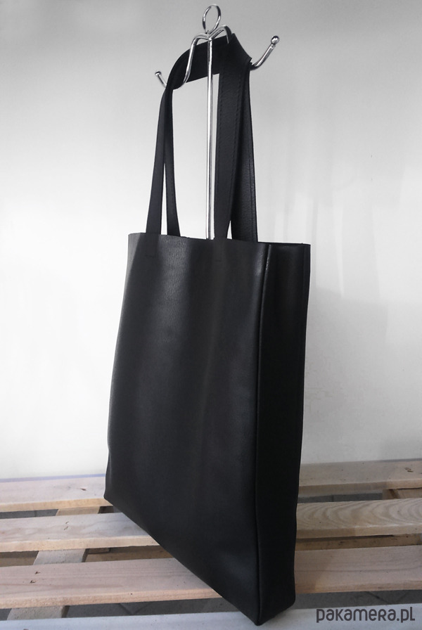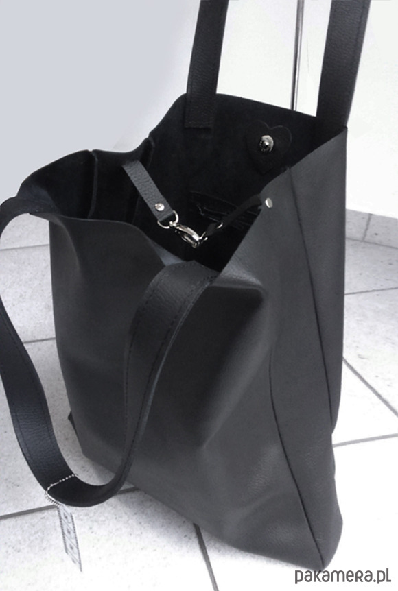 Ekskluzywna torba- worek XL z najwyższej jakości naturalnej skóry licowej w kolorze czarnym.