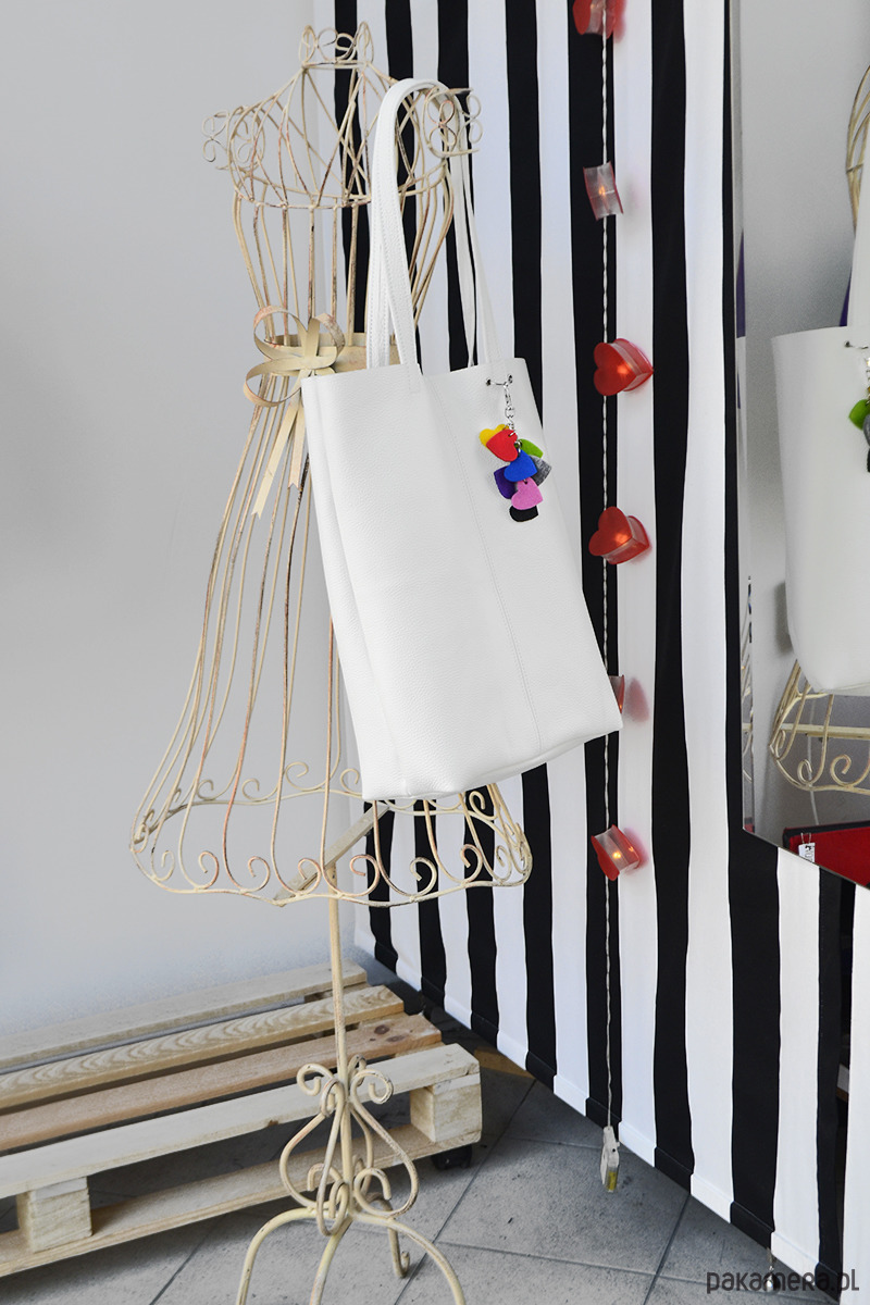 Torba na ramię wykonana z naturalnej skóry w kolorze białym.