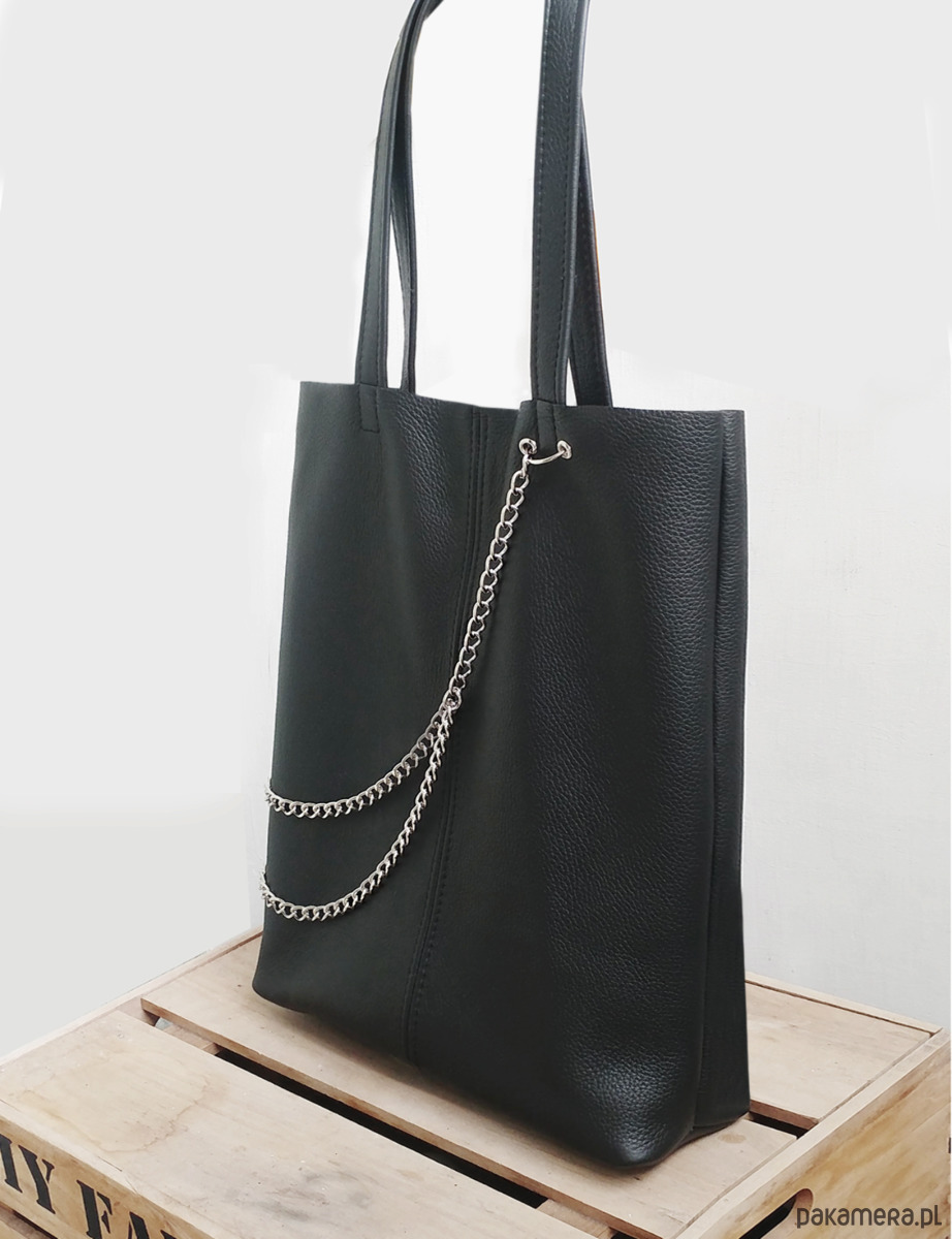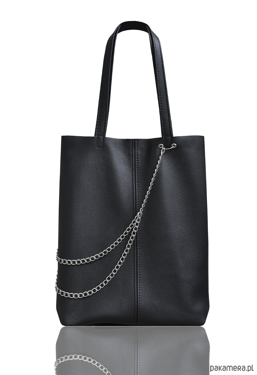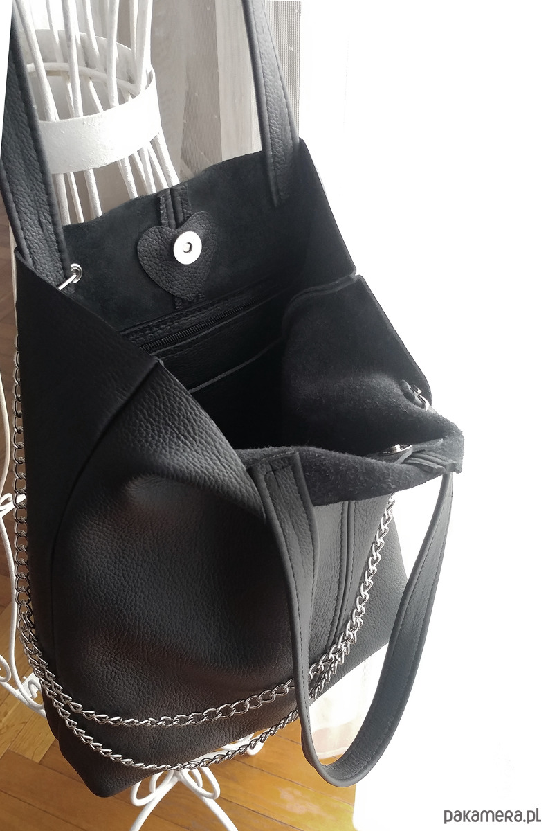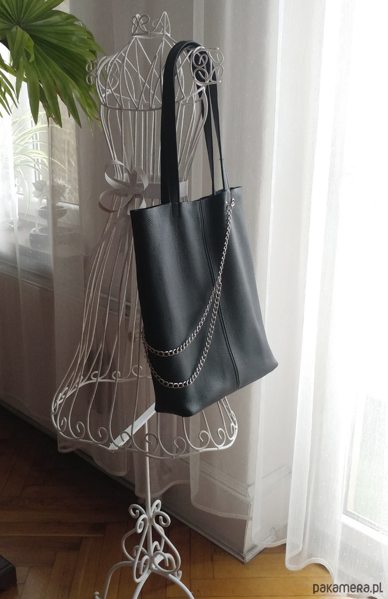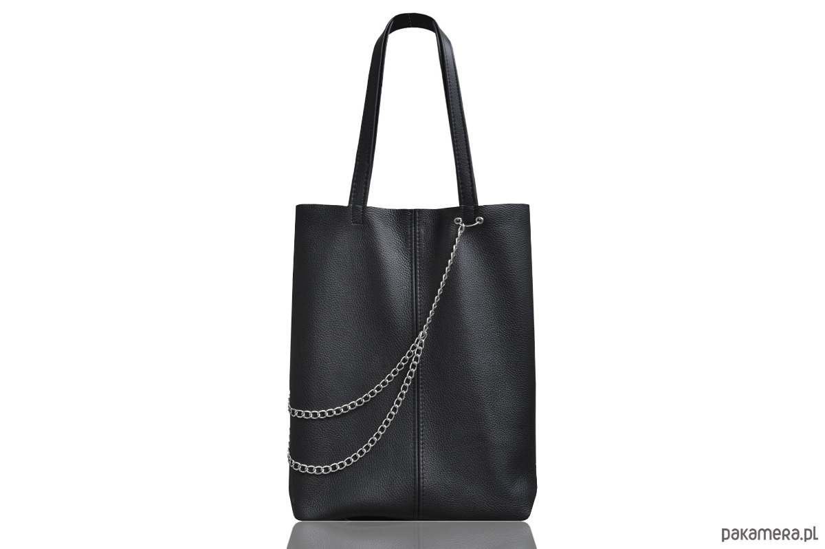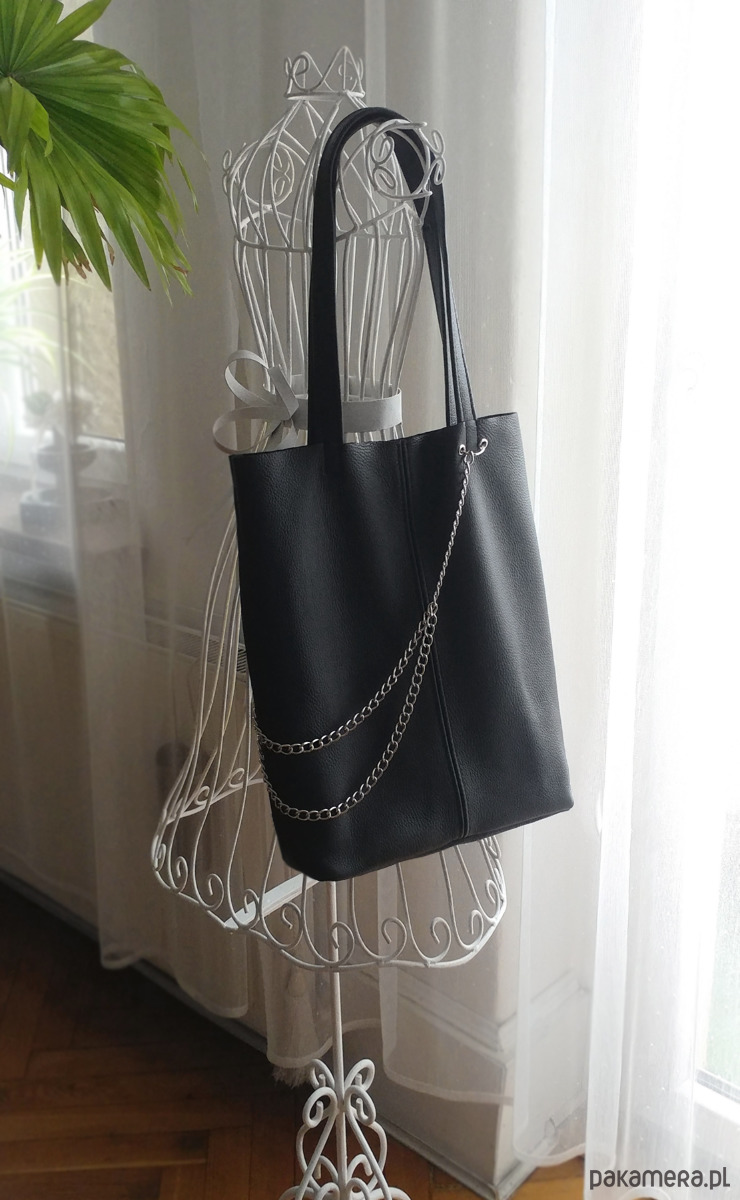 Czarna duża torba na ramię wykonana z najwyższej jakości skóry naturalnej o strukturze groszek.