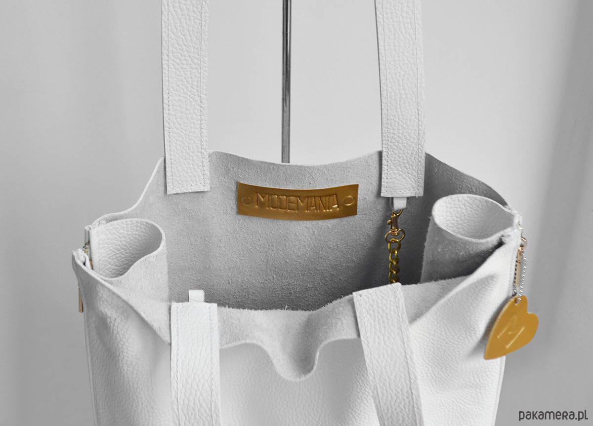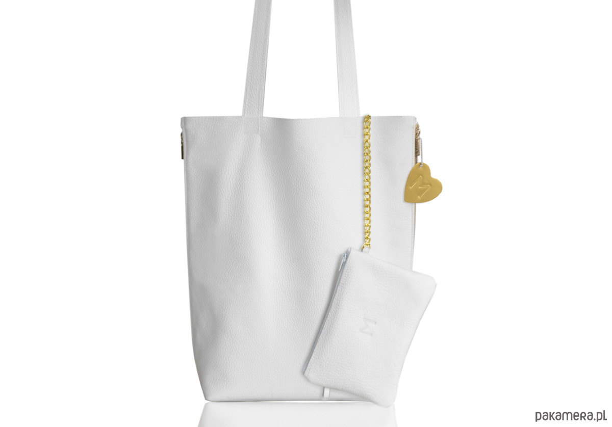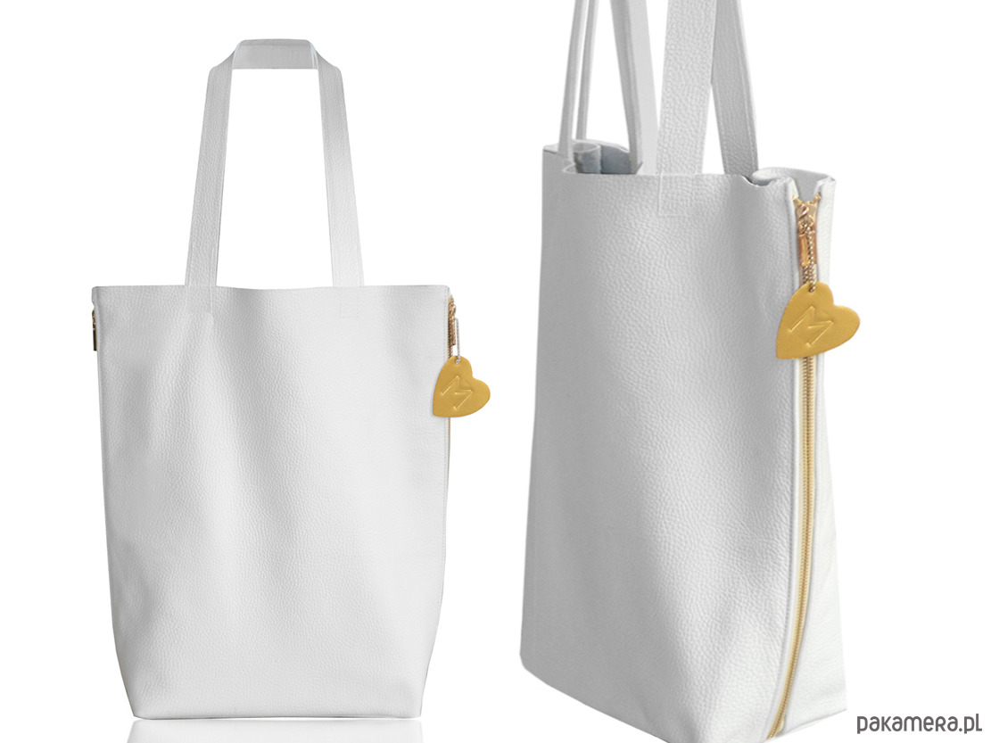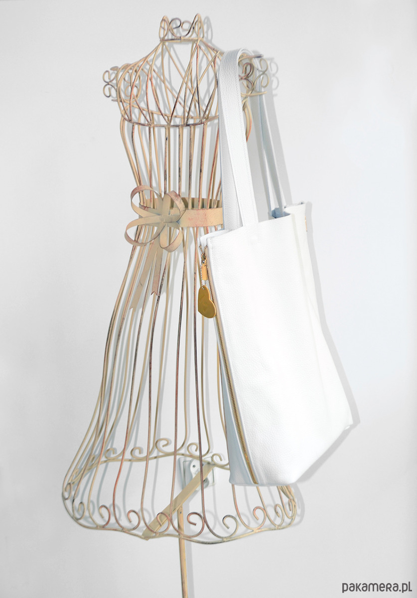 Ekskluzywna torba z najwyższej jakości naturalnej skóry licowej w kolorze śnieżnobiałym.