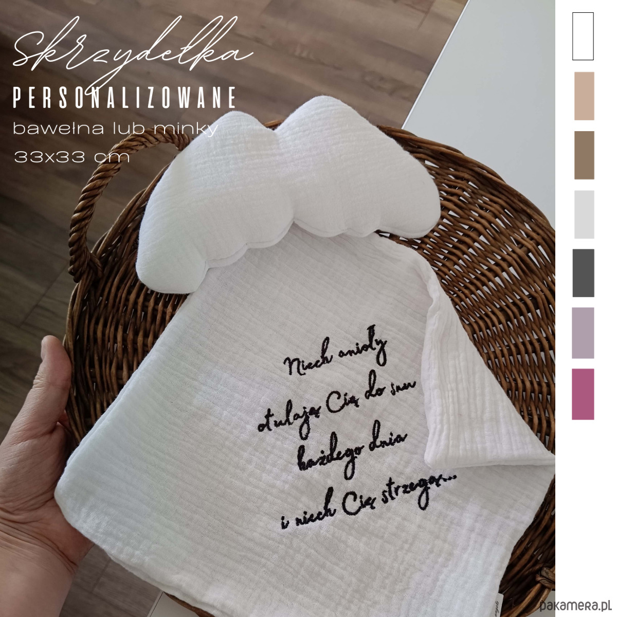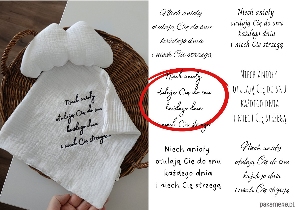 W naszej ofercie znajdziesz min. koce, ręczniki, zawieszki do smoczków, termofory, ozdoby, pieluszki.