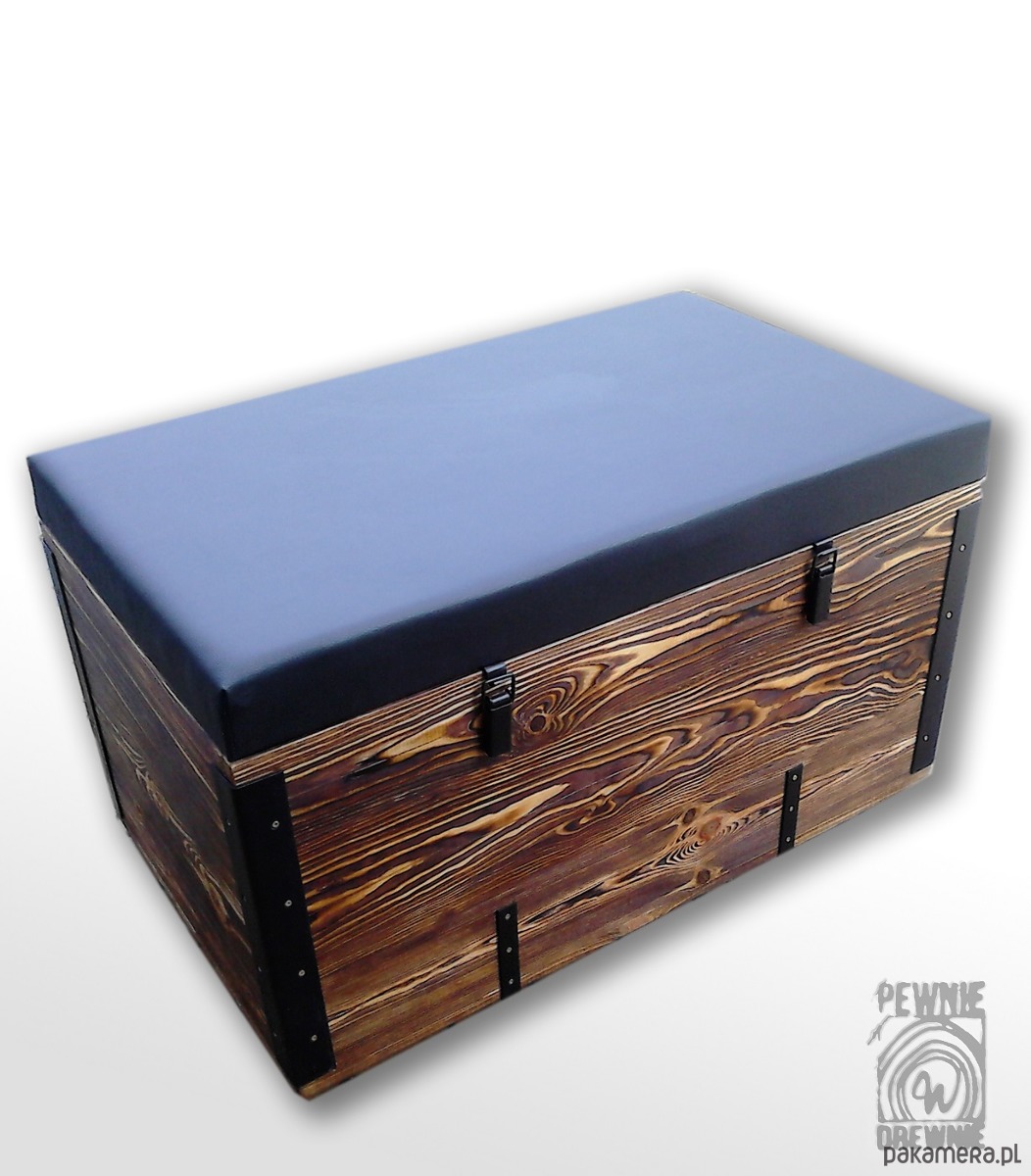 Niepowtarzalna skrzynia/kufer z tapicerowanym siedziskiem.