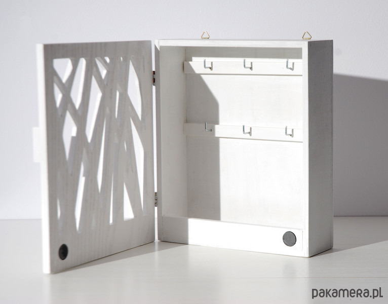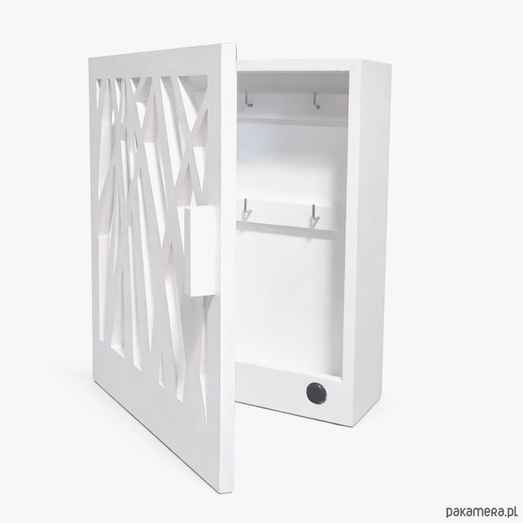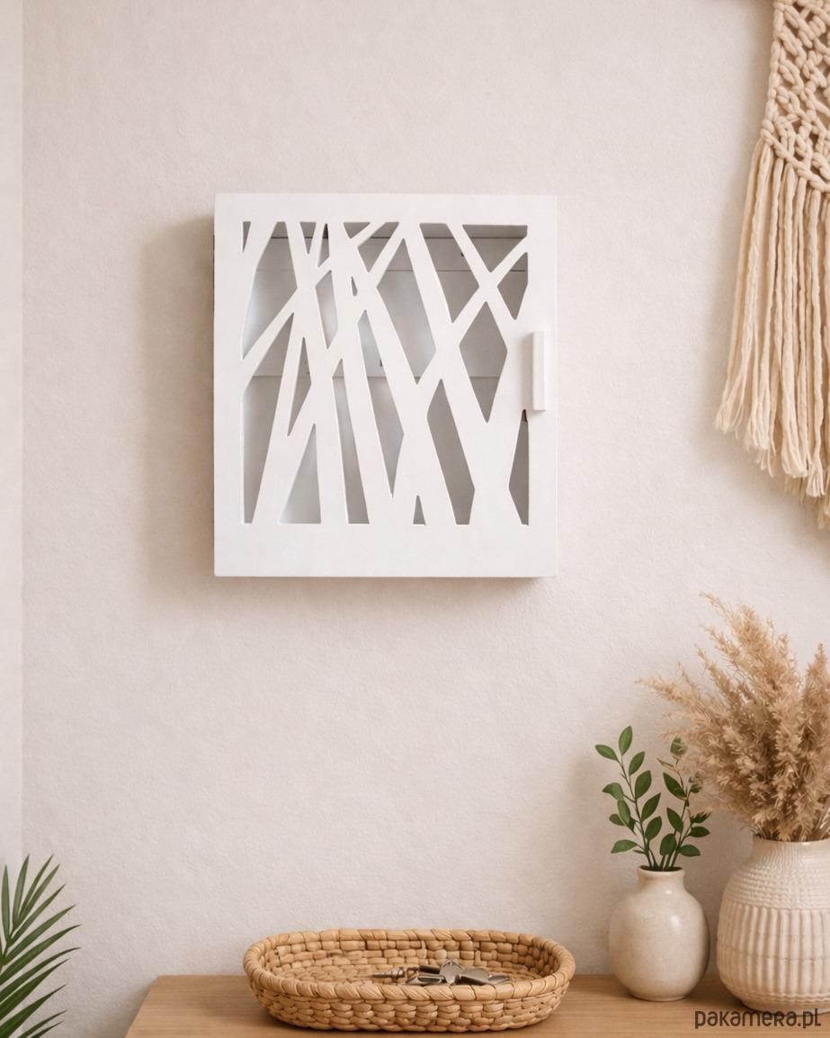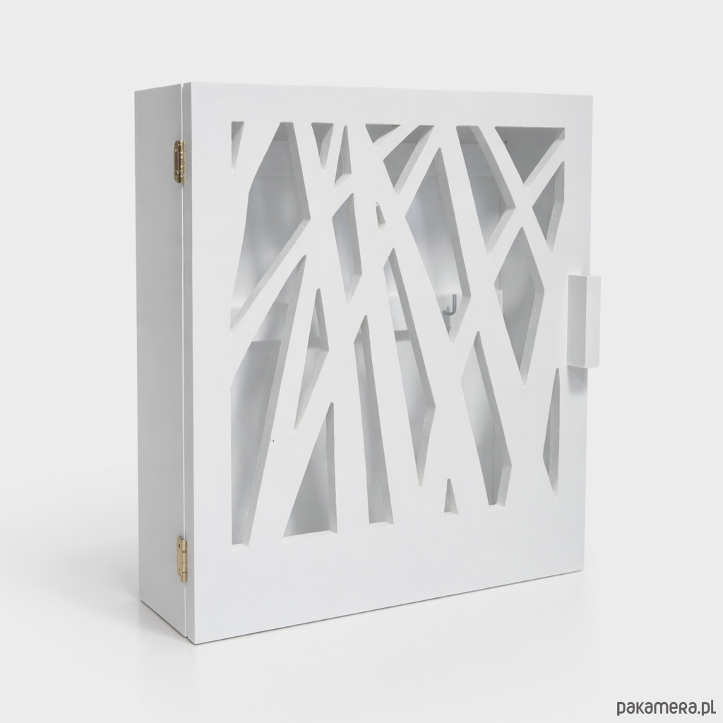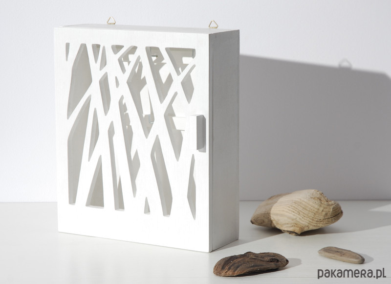 Nowoczesna, oryginalna szafka na klucze. Z pewnością zwróci uwagę swą formą i wyciętym, ażurowym wzorem nawiązującym do natury.