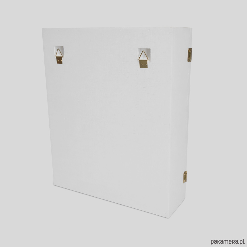 Skrzynka jest prosta, wykonana z drewnianej sklejki, malowana na biało.