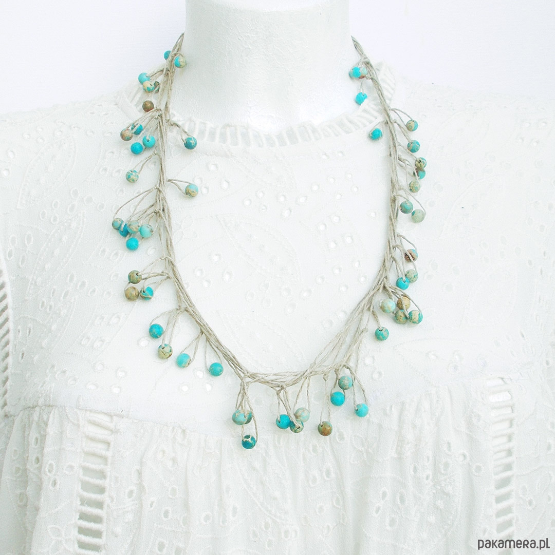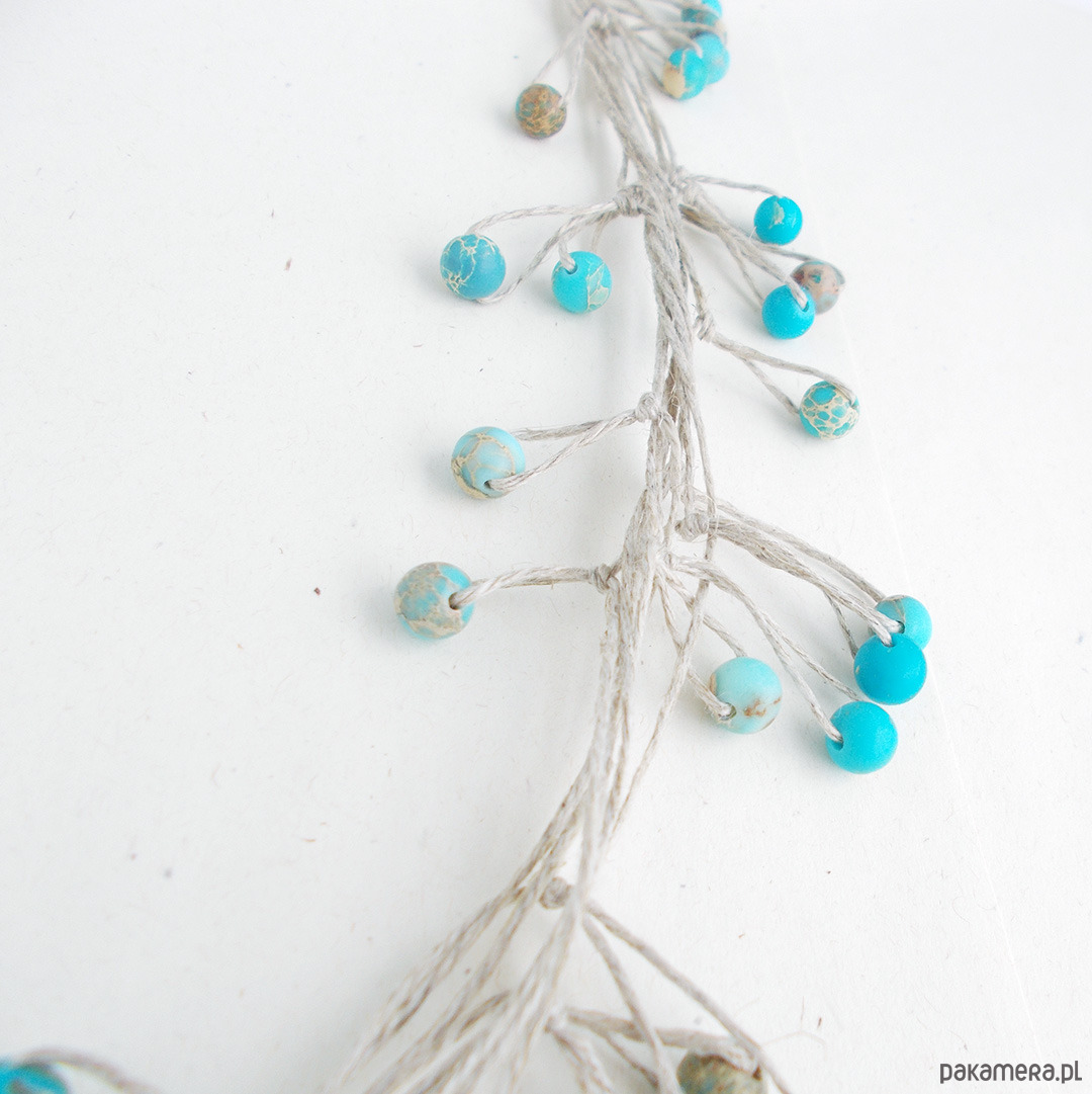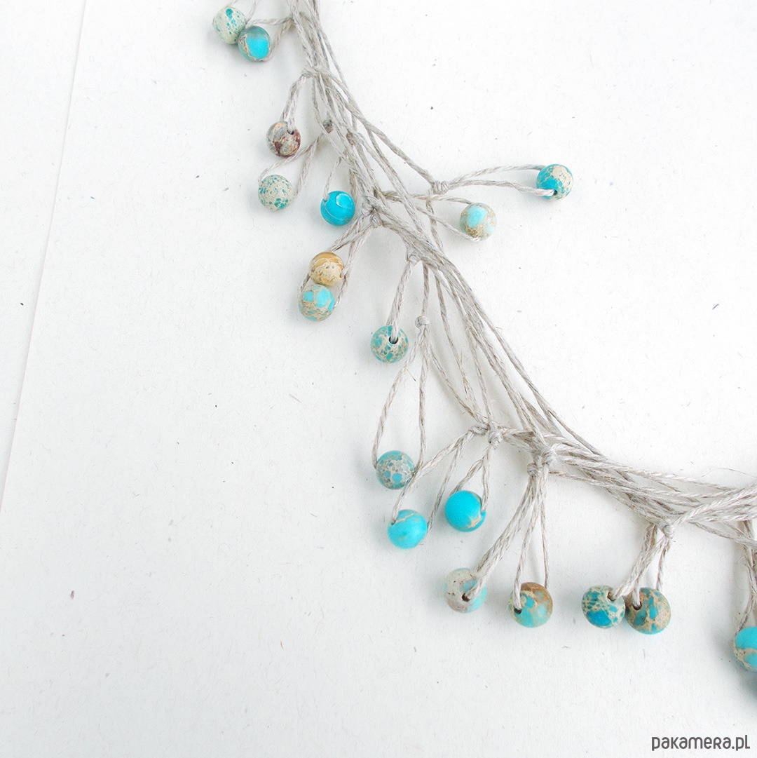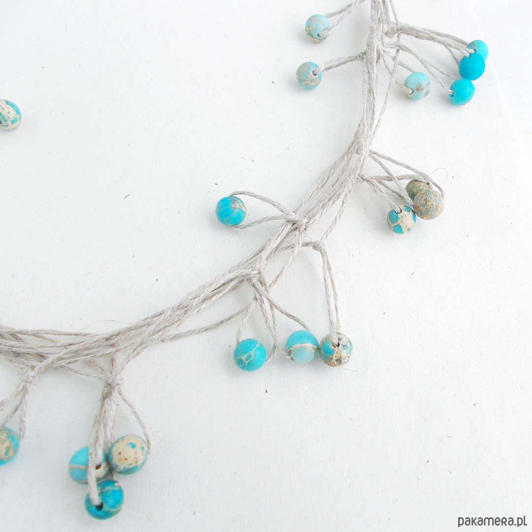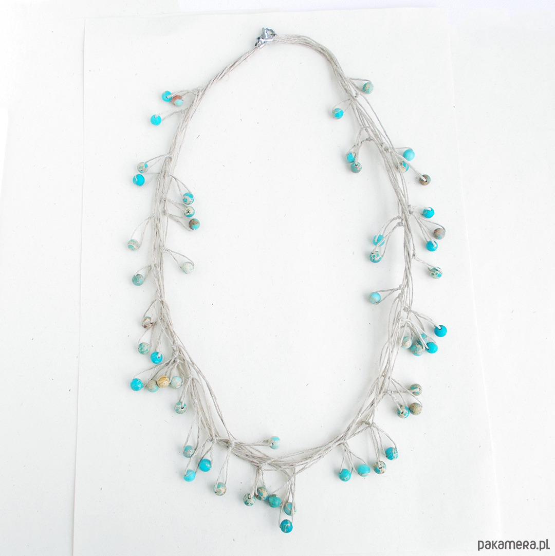 Oryginalny, lekki, fantazyjny naszyjnik na bazie naturalnego lnu