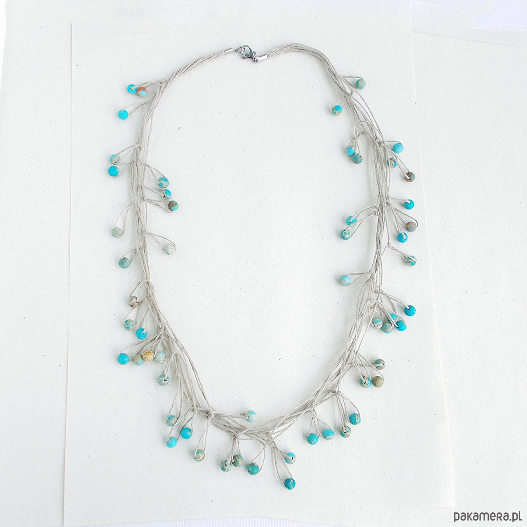 Oryginalny, lekki, fantazyjny naszyjnik na bazie naturalnego lnu
