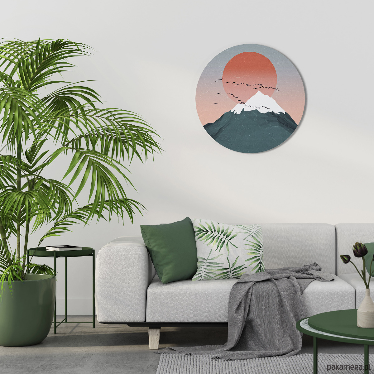 Wprowadź do swojego wnętrza wyjątkowy charakter dzięki eleganckiemu okrągłemu obrazowi. To nowoczesna dekoracja ścienna, która idealnie komponuje się z różnymi stylami aranżacji – od minimalistycznych, przez klasyczne, aż po boho.