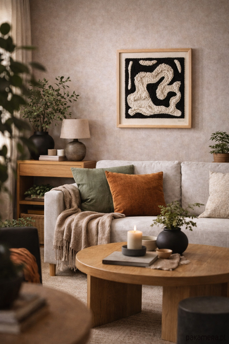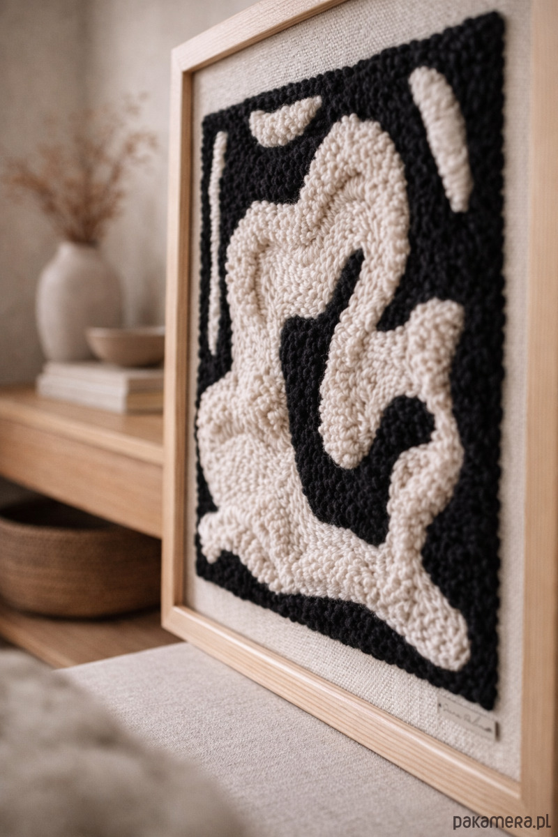 Nasza kompozycja to idealny wybór dla miłośników minimalistycznego designu i naturalnych materiałów. Dzięki użyciu wysokiej jakości tkaniny monks cloth oraz mieszanki wełny i akrylu, obraz nie tylko zachwyca wyglądem, ale również trwałością.