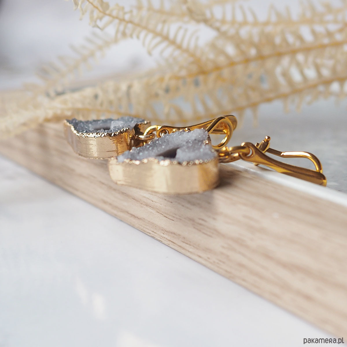 • Zawieszki z agatem druzą w złotym okuciu