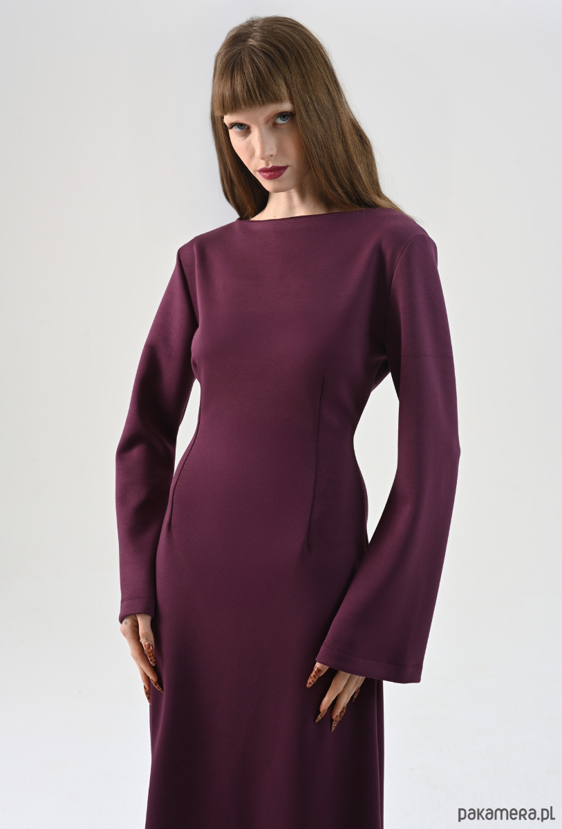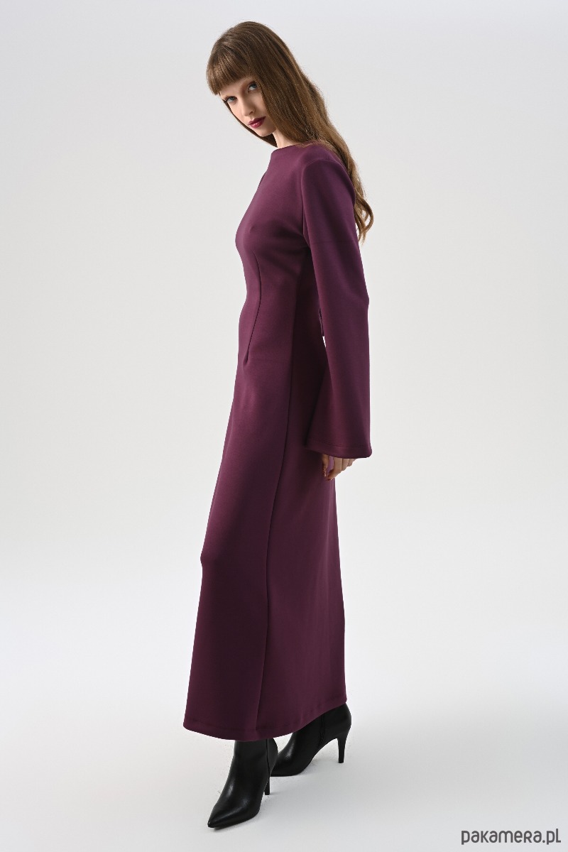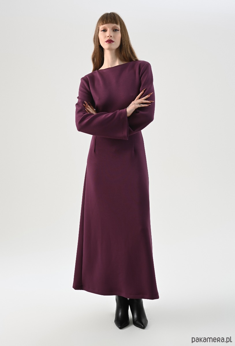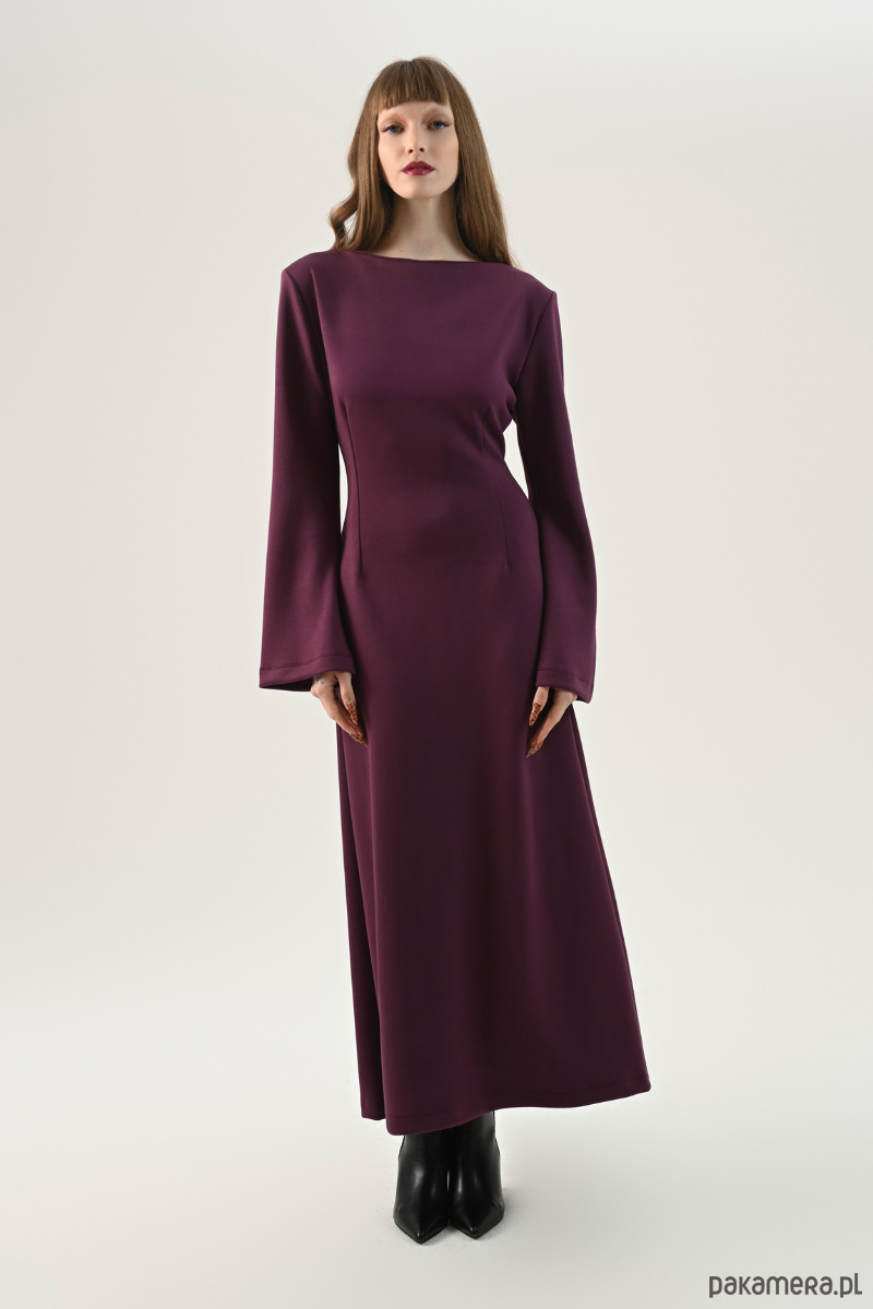 Podkręć swój look dzięki naszej najnowszej propozycji – śliwkowej sukience maxi, która idealnie balansuje między surowym minimalizmem a kobiecym detalem. Ta sukienka z długim rękawem to absolutny must-have dla dziewczyn, które szukają ubrań z charakterem, idealnych zarówno na wieczorne wyjścia, jak i klimatyczne sesje zdjęciowe.