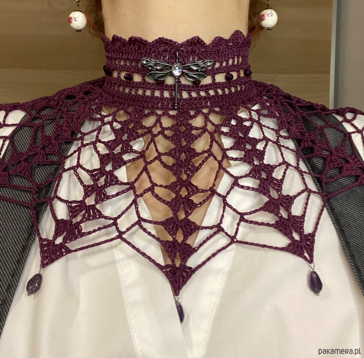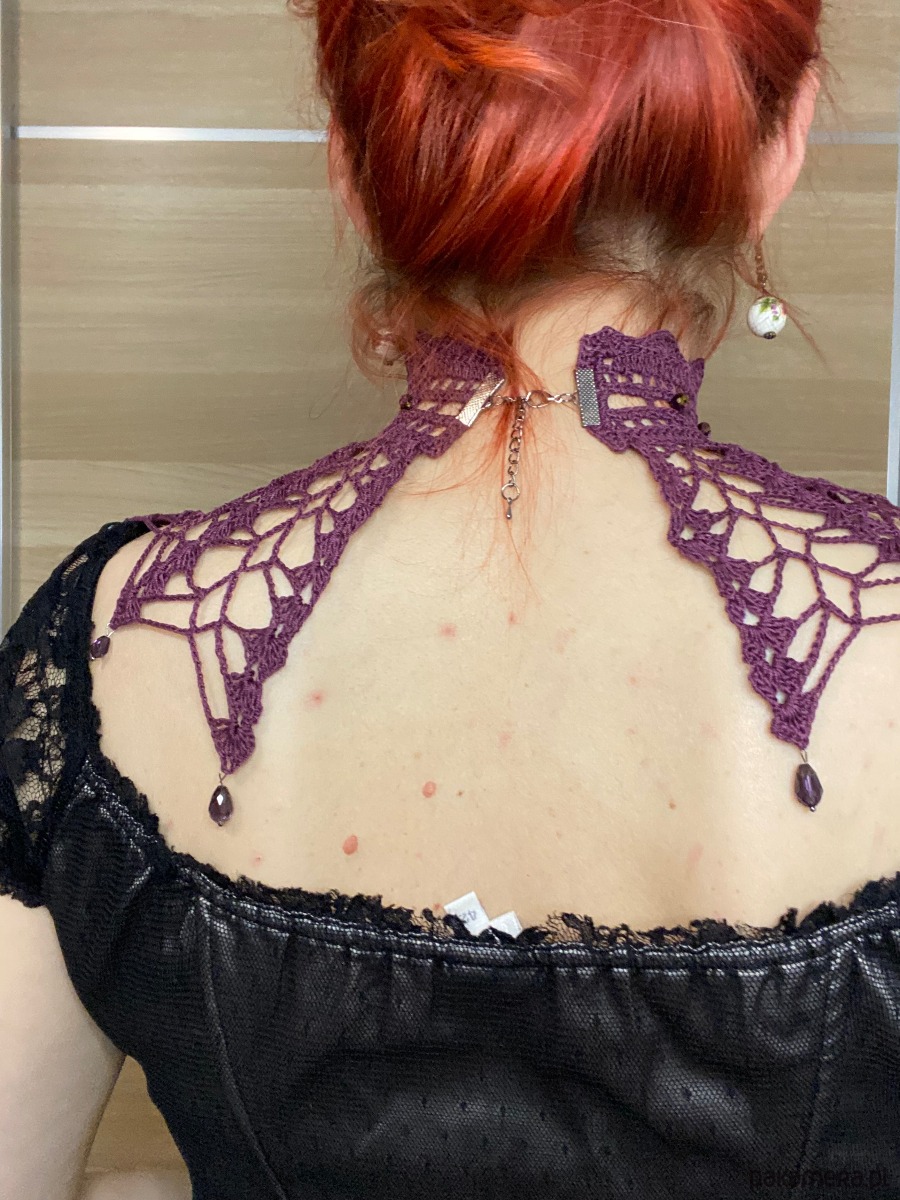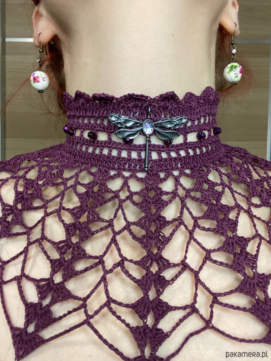 Co tu dużo mówić… jest prześliczna, duża koronkowa śliwkowa kolia niczym ważka na pajęczynie, jest piękna! ✨💜ozdobiona fioletowymi koraliczkami fasetowanymi oraz fioletowymi łezkami na końcach koronki, ważka jest wisienką na torcie❗️