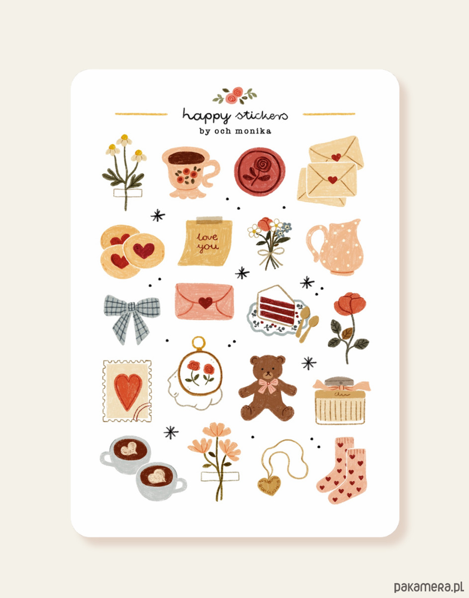 Słodka Miłość - arkusz papierowych naklejek A6
