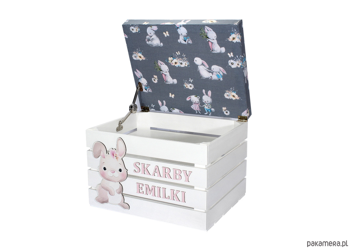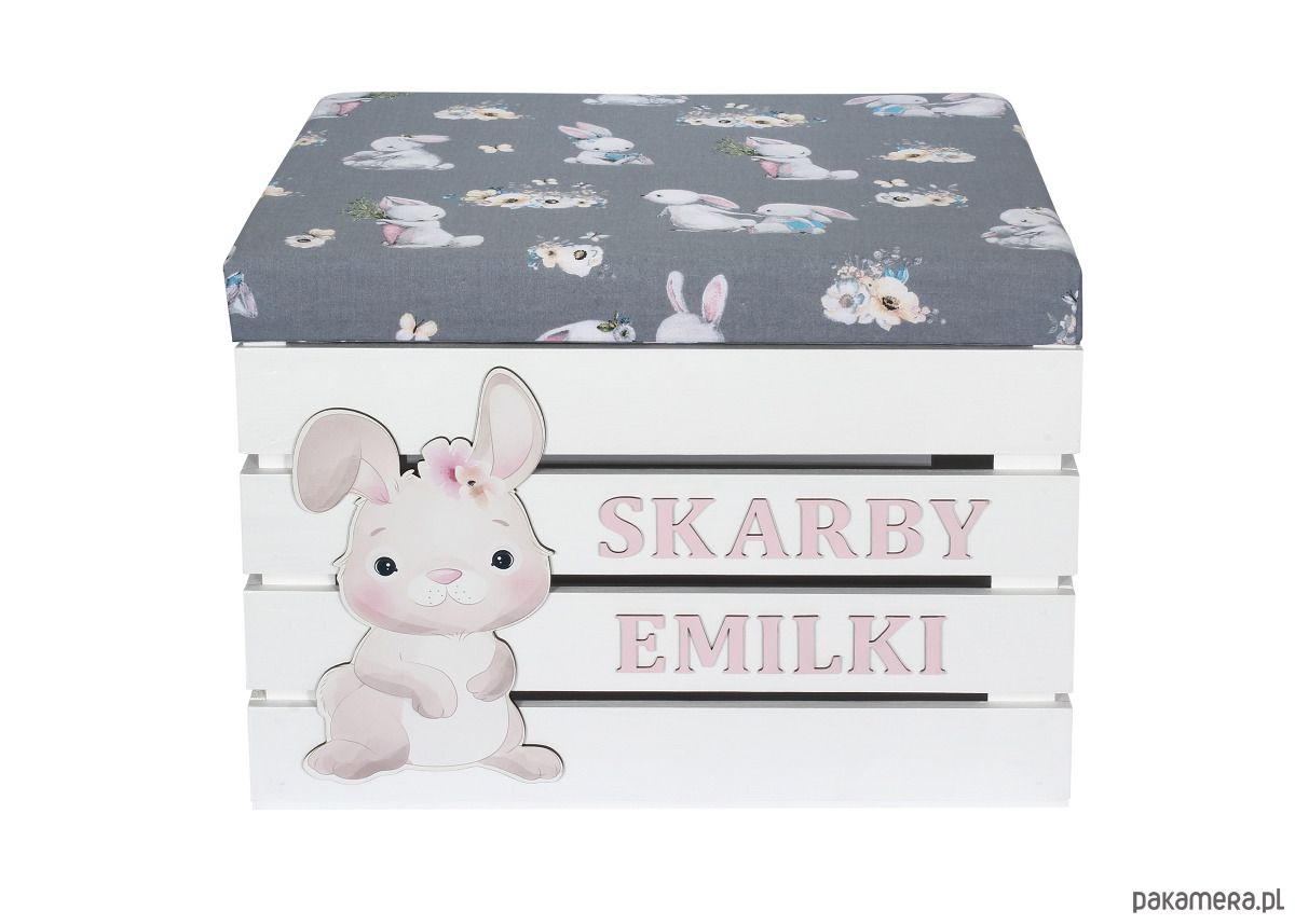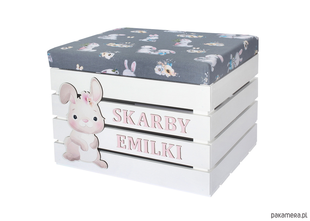 KRÓLICZEK personalizowana skrzynia na zabawki z siedziskiem