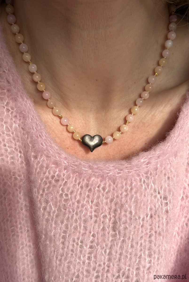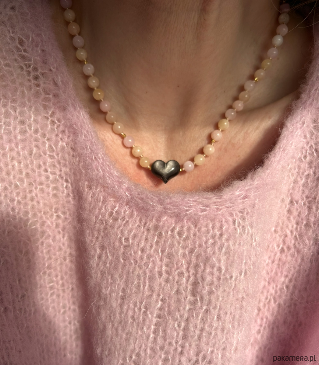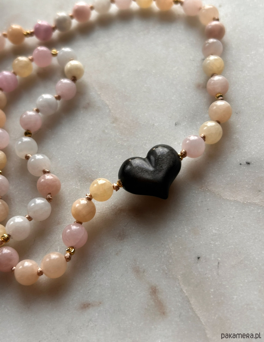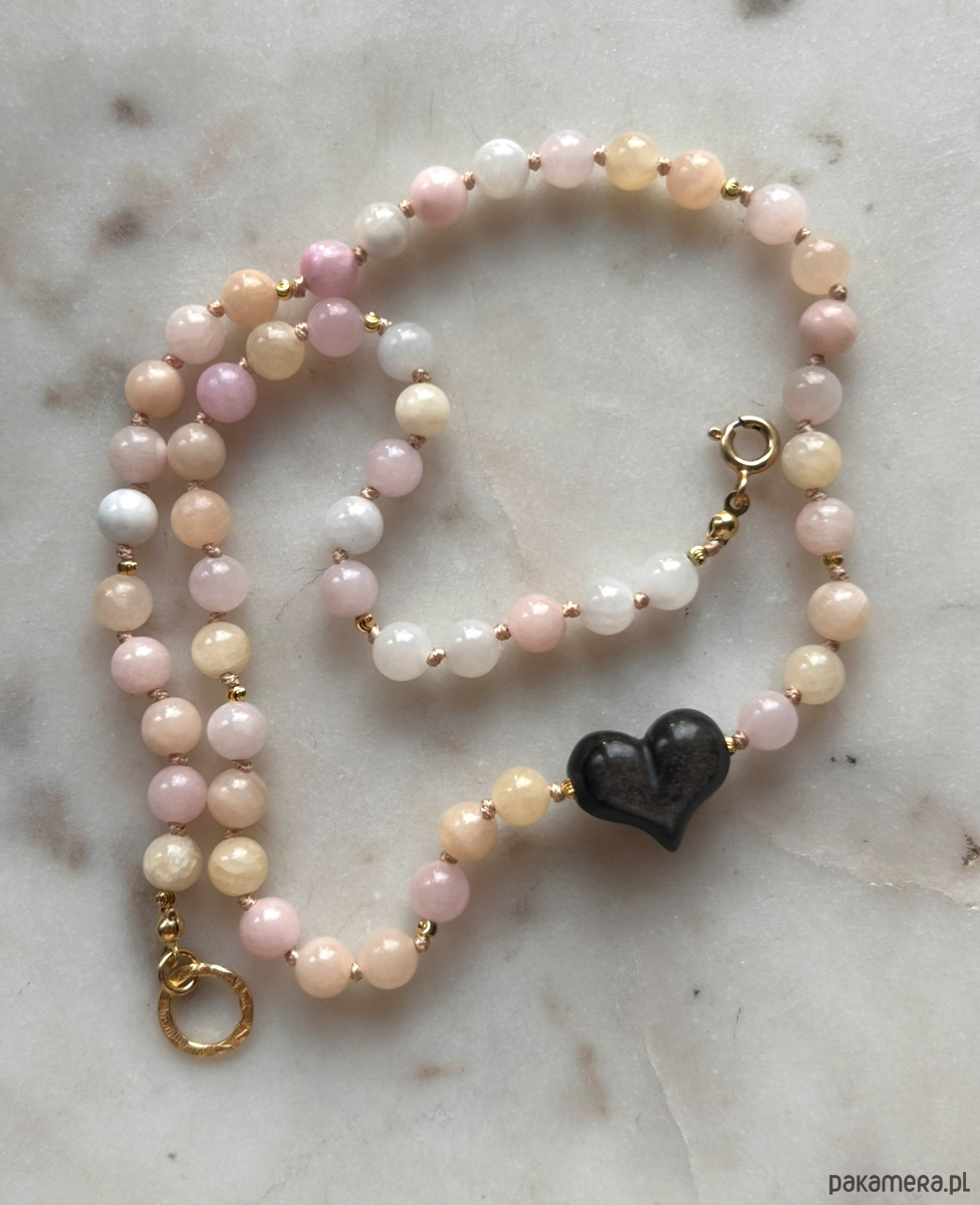 Choker, naszyjnik z obsydianowym sercem i pastelowymi agatami.